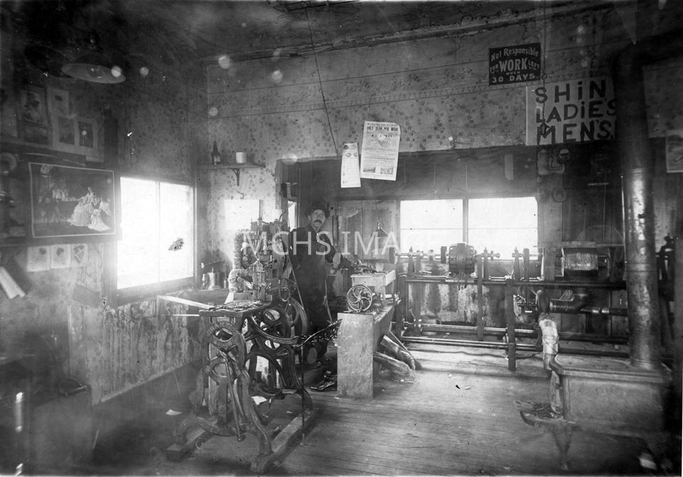Old shoe shop where Valley National Bank (1984) stands. "Charles Robert Van Marter was a boot maker. Came to Kingman 190l from Chloride. To Chloride 1899 from Ca. or Nevada. Born Pittsburg." 5th and Beale Streets, NE cornerCollection