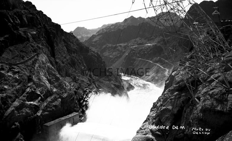 Hoover Dam. Overview of spillway and river below dam.Collection