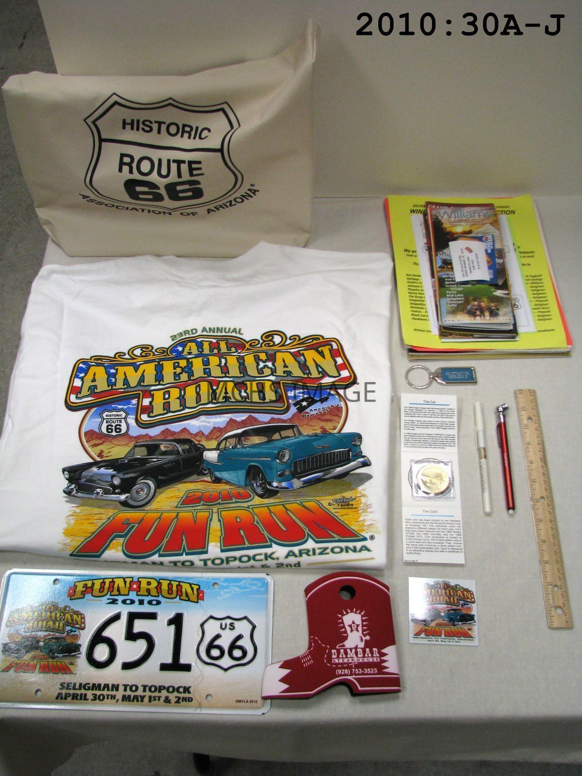 2010 (23rd Annual) Route 66 Fun Run kit. In excellent condition.A - Tote bag B - License plate