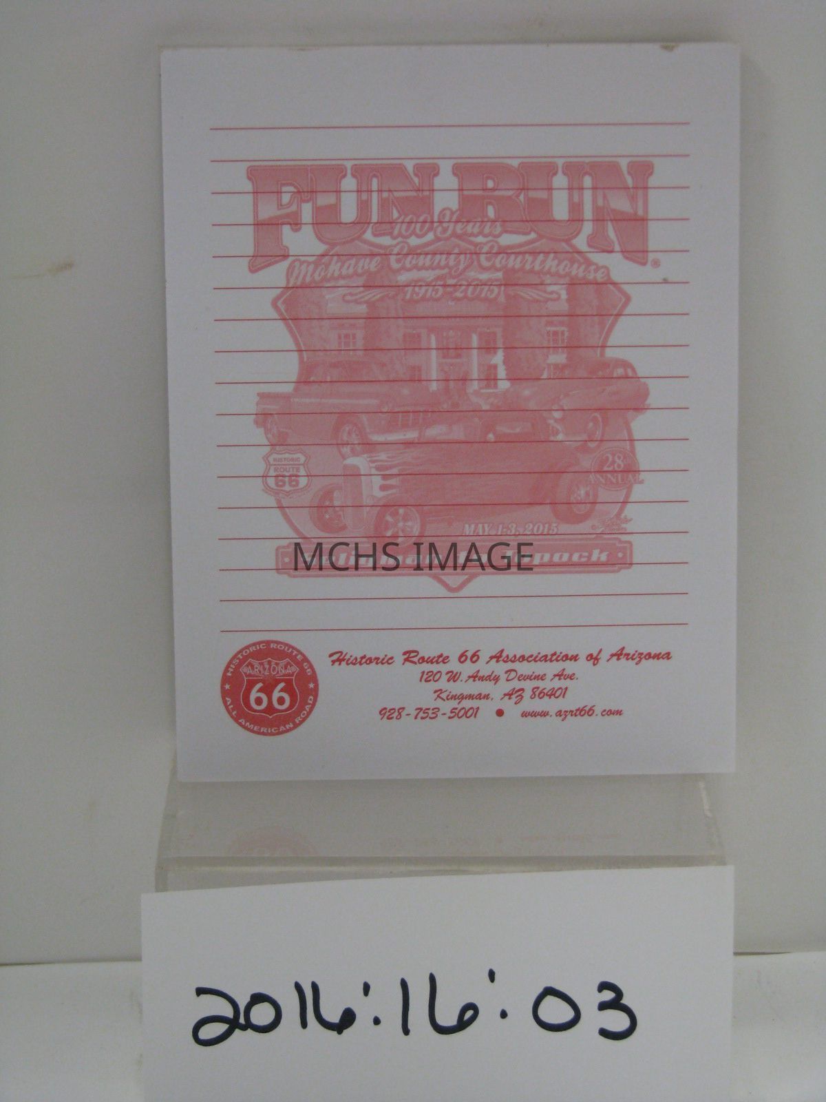 2015 (27th Annual) Route 66 Fun Run commemorative Note / Scratch pad
