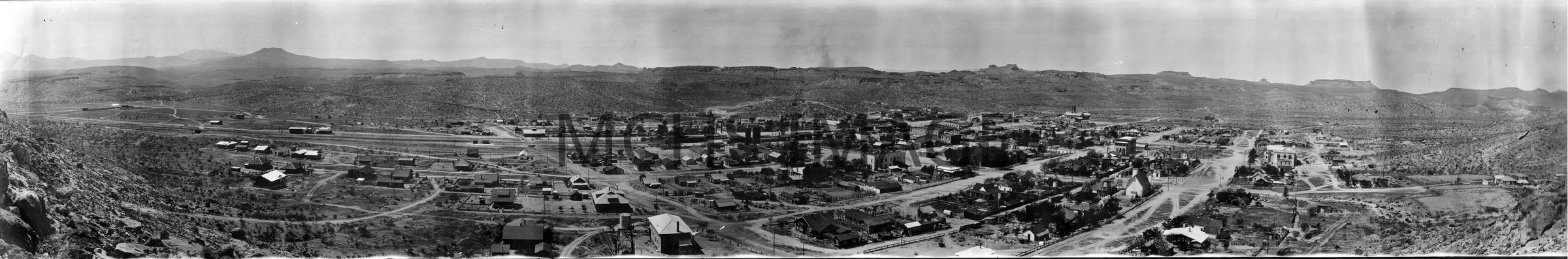 Panorama of Kingman looking SW. Bonelli House has burned (1915), new house not built yet (rebuilt in 1915). Courthouse being built, dome not installed yet.Collection