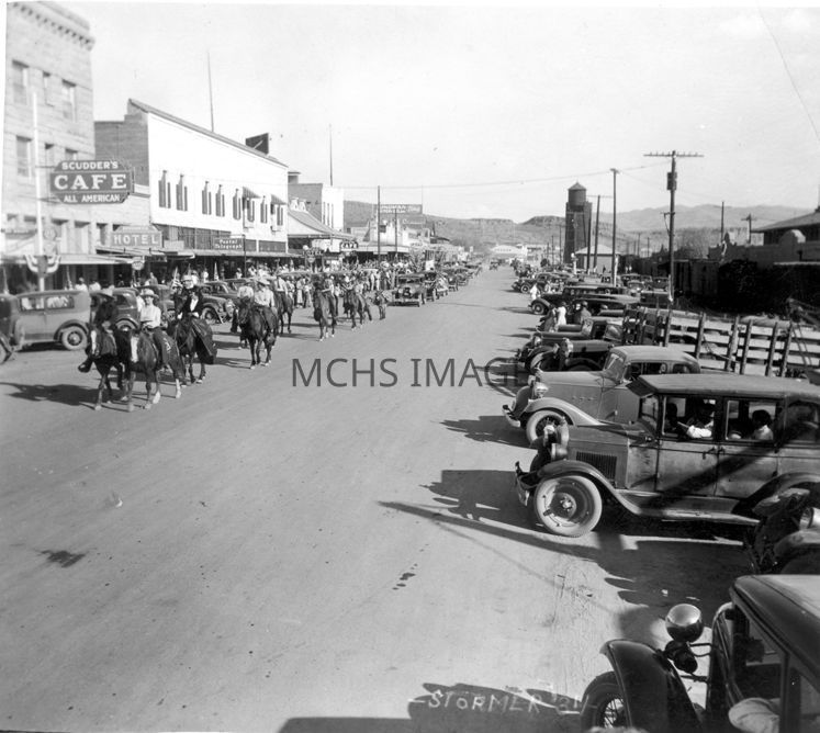 Parade on Front Street ( Andy Devine) in 1930, note Beale Hotel in background.