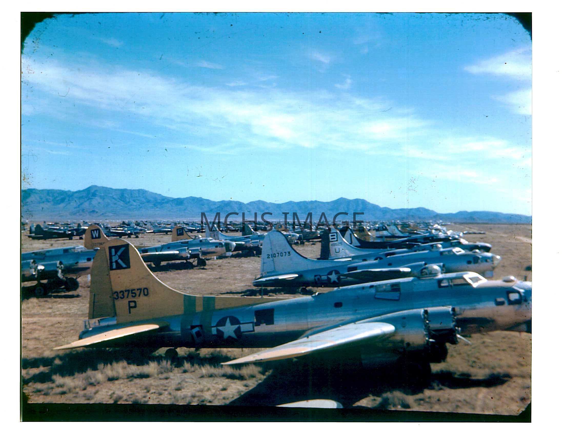 Photos of B17 bomber aircraft being stored at KAAF aircraft storage east of Kingman in 1947.Collection