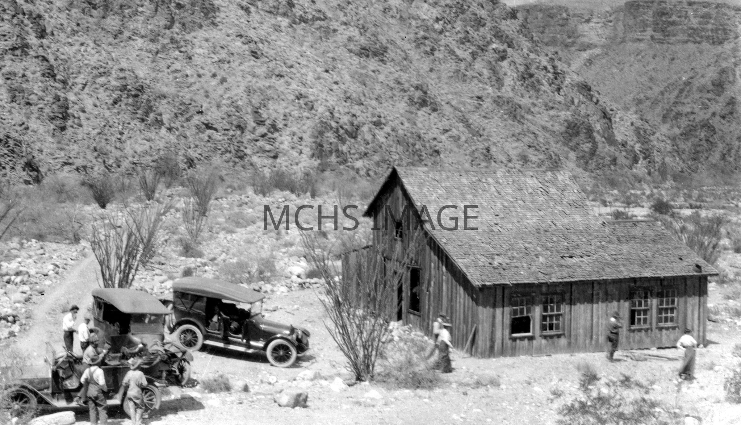 Also known as Farlee Hotel. Remains of Santa Fe Hotel about 3-3 1/2 miles from mouth of Diamond Creek. This was the first site from which the public could view the Grand Canyon. Santa Fe passengers desiring to see the Grand Canyon detrained at Peach Springs, traveled by horse or wagon down Peach Springs Canyon, stayed at this hotel, and then back up Peach Springs Canyon. There was a fair auto road into this site for a number of years.Collection