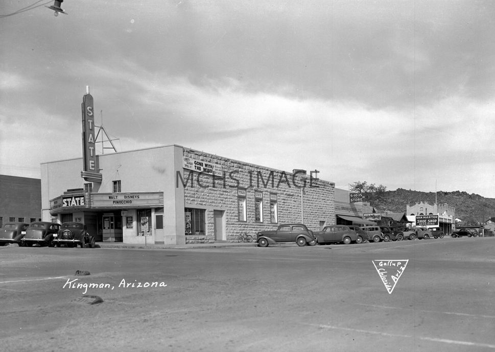Exterior photograph of the State Theater at 4th and Beale Streets, Kingman, taken in 1939.Collection