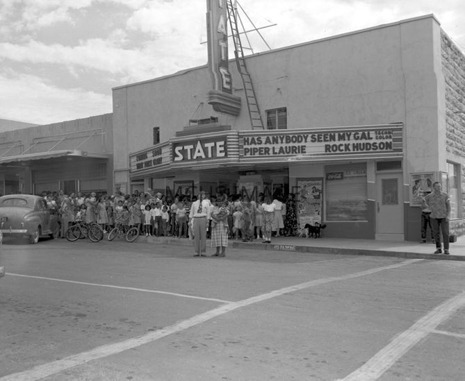 Photograph of the crowds at the State Theater in Kingman located at the corner of 4th and Beale, taken in 1951.Collection