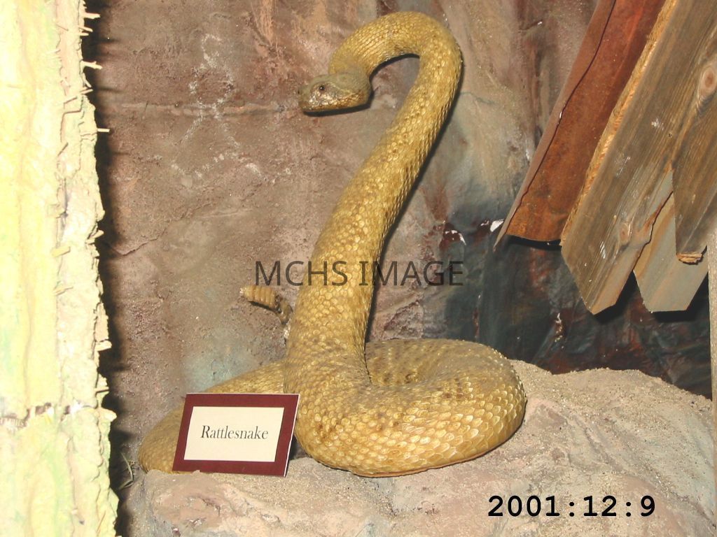 Rattlesnake is mounted with rattles in a pre-strike position.