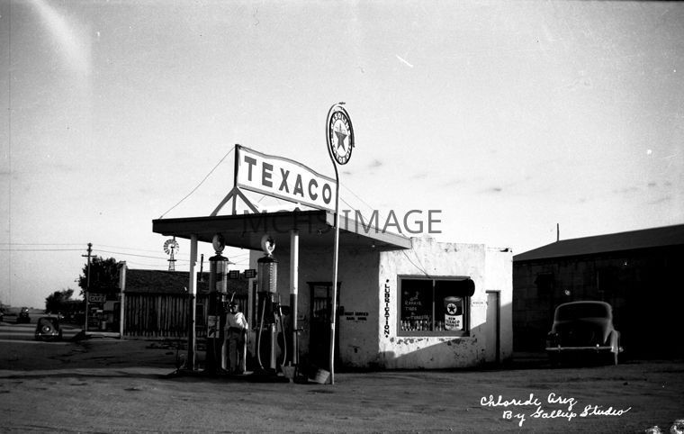 Texaco Station on the SW corner of Tennessee Avenue and 2nd St. in Chloride. To the left is Hom Gong's, a Chinese immigrant, Chloride CaféOther Names and Numbers