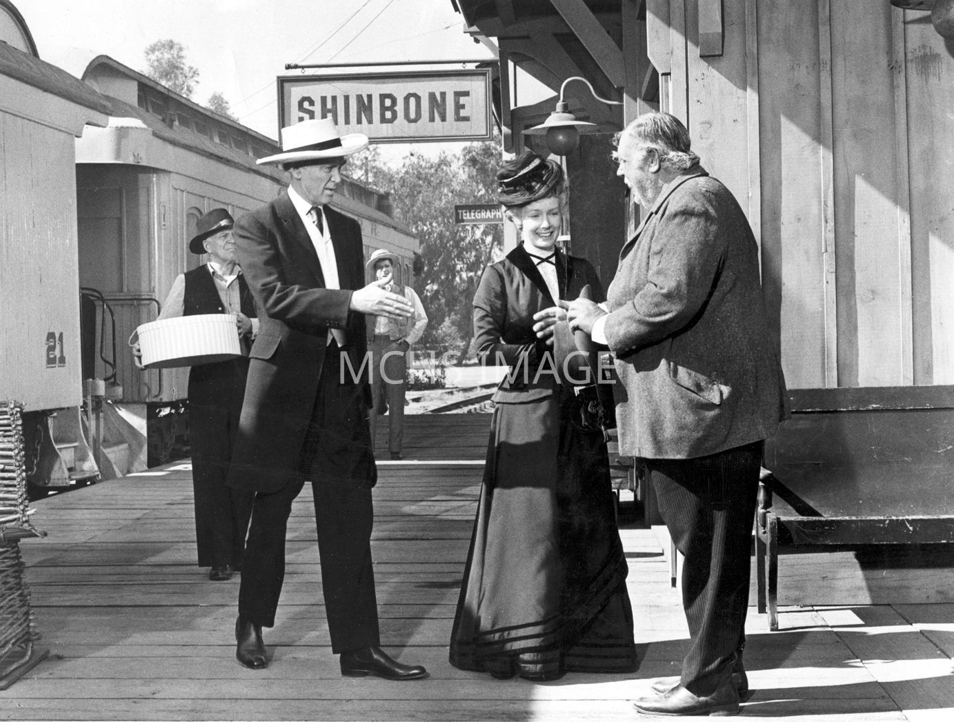 Left to right: James Stewart, Vira Miles, Andy Devine