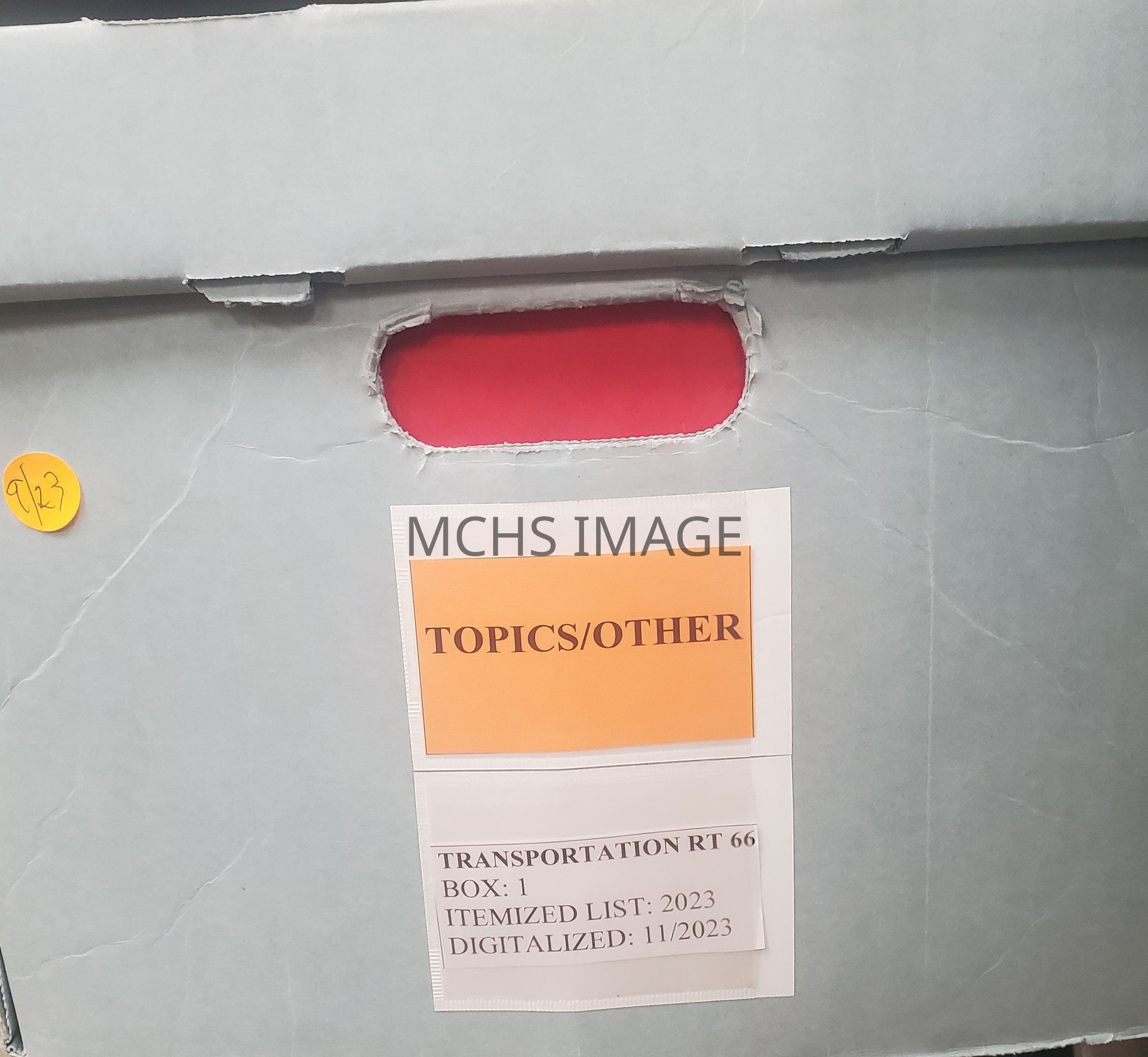 Archival box: Information regarding Route 66 from 1914 to 2004. Newclippings, fun runs, 4 route 66 magazinesCollection
