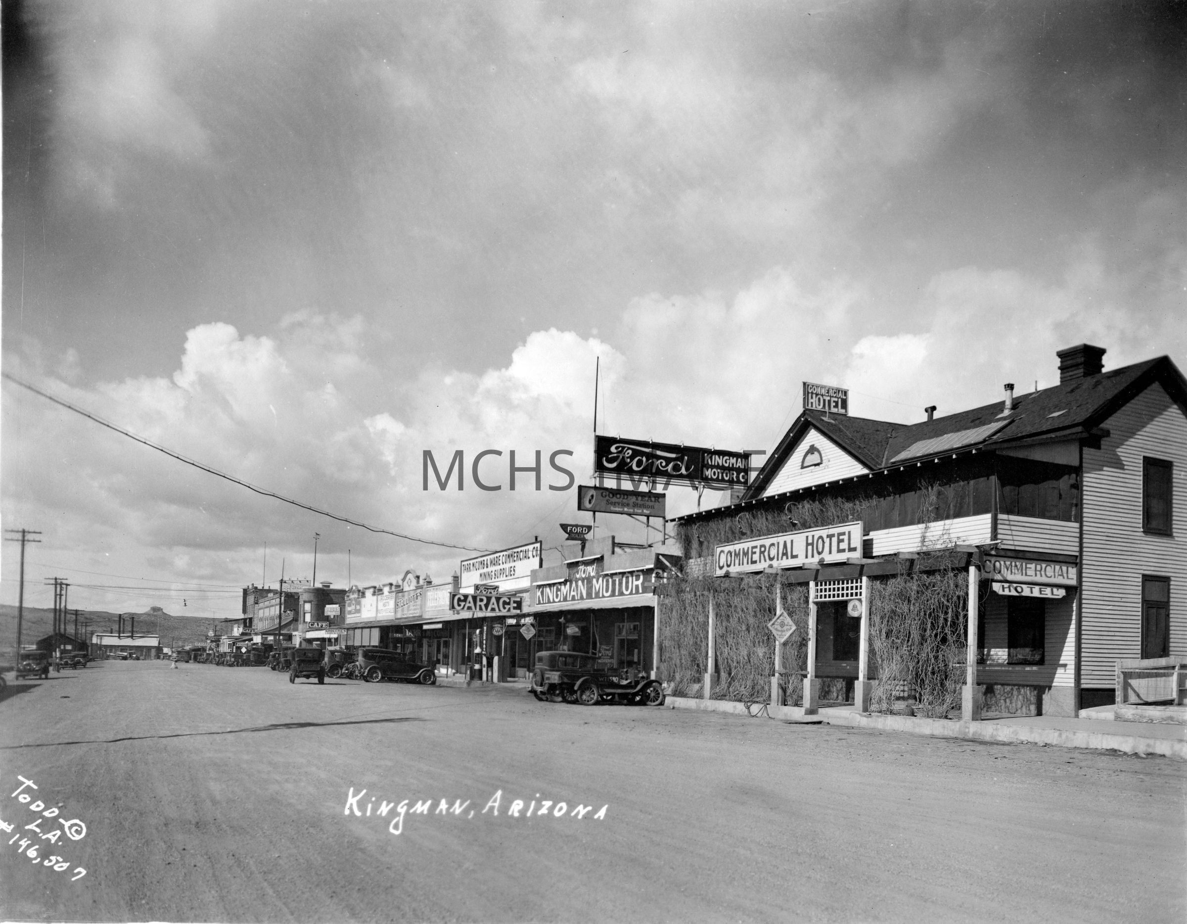 Looking west on Front Street: Commercial Hotel, Tarr McComb and Ware, Ford Kingman Motor Co. Front Street (Andy Devine Avenue)Collection