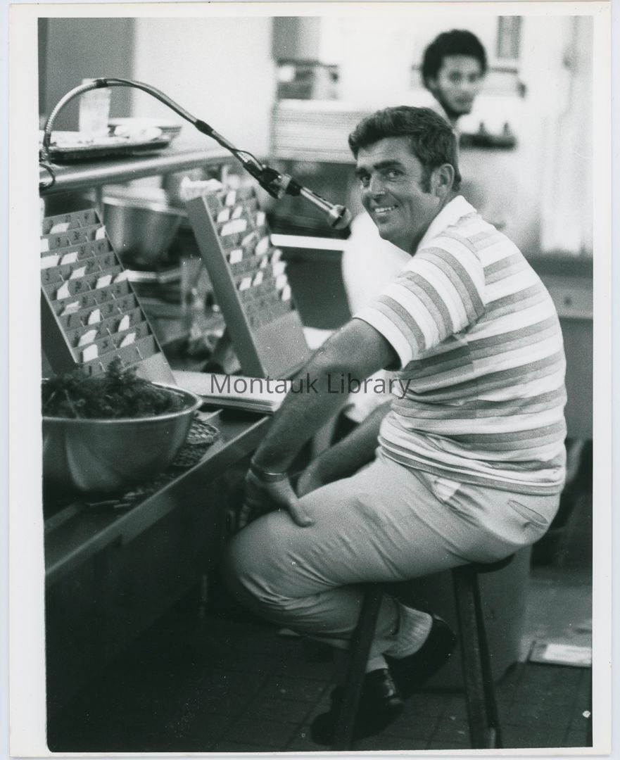 Maria-Louise had not expected to take as many photographs as she did that day, but ultimately, she said, “I used every drop of black-and-white film in town.” She and a friend and Gosman’s hostess, Wendy Rosa-Monda, developed 59 8 x 10 inch prints and had them scanned, then presented a photo album to Roberta Gosman Donovan, who died in 2018. Dr. Sidoroff, who donated the scans to the Montauk Library Archives, said she is still in touch with people she worked with over her seven summer seasons at Gosman’s Restaurant almost half a century ago.
