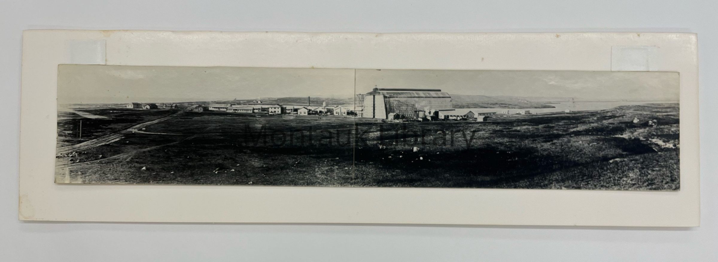 Black-and-white panoramic photo of the U.S. Naval Station, Blimp and Seaplane Hangar.Photograph Details