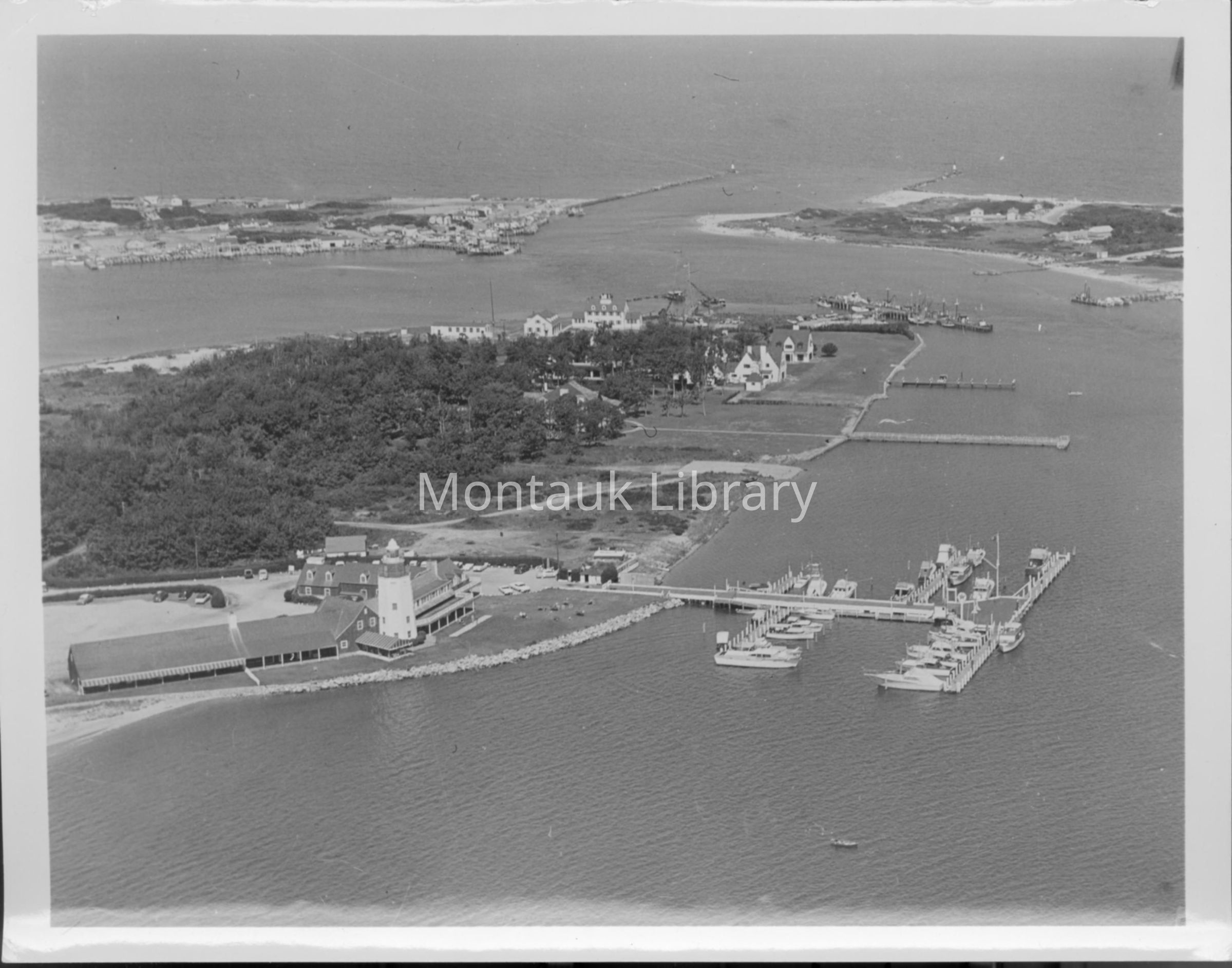 Aerial photograph of Star Island showing the Montauk Yacht Club, Coast Guard Station, Lake Montauk Inlet, Gosman's Dock.Photograph Details