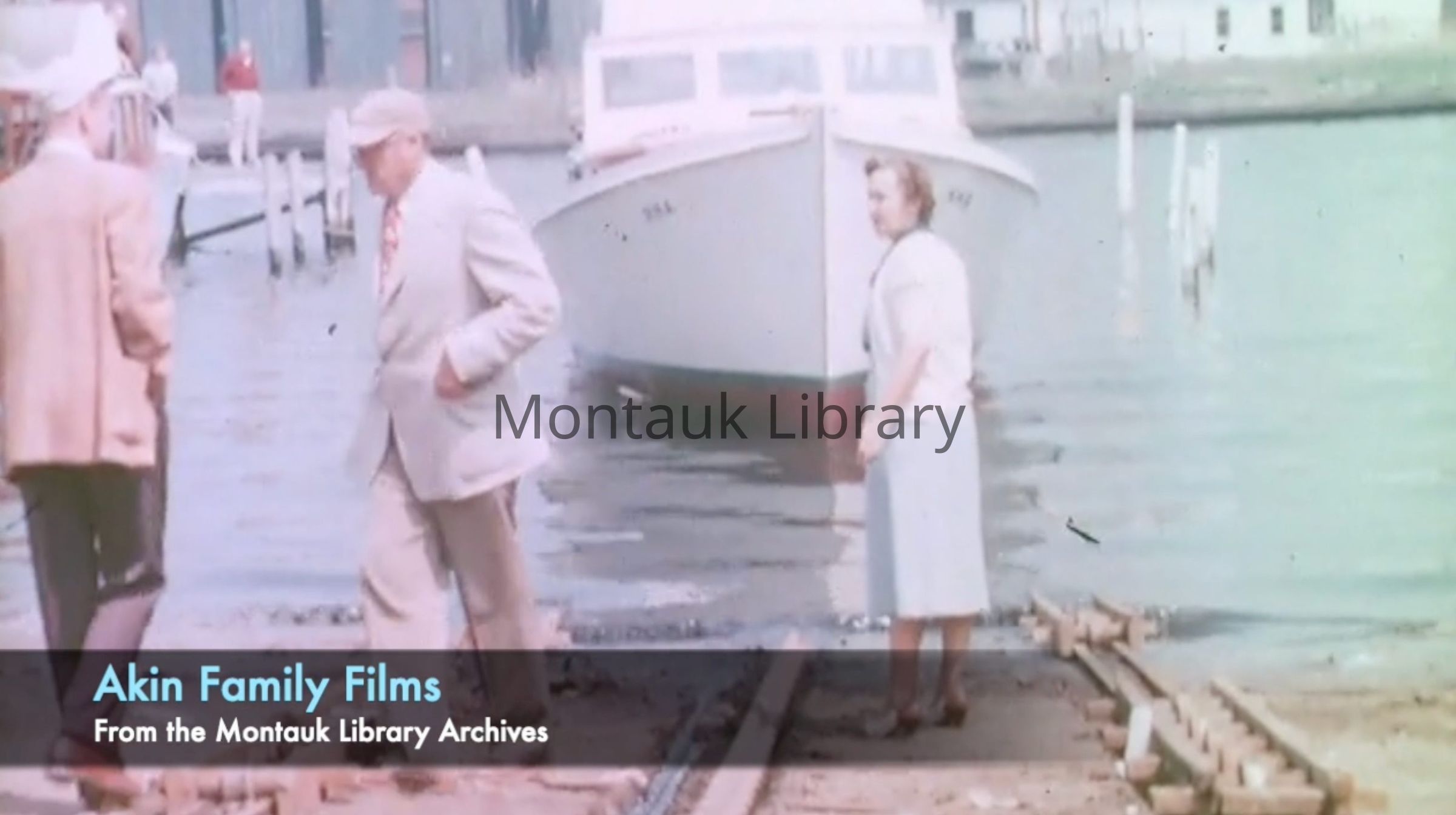 Two DVDs of historical family footage from the Akin Family of Montauk, New York captured during the 1950s originally on 16mm film. The films show the family sportfishing off Montauk, New York, footage from the hurricane of 1954, sports events, hunting, family gatherings, and fishing trips to warmer climates.