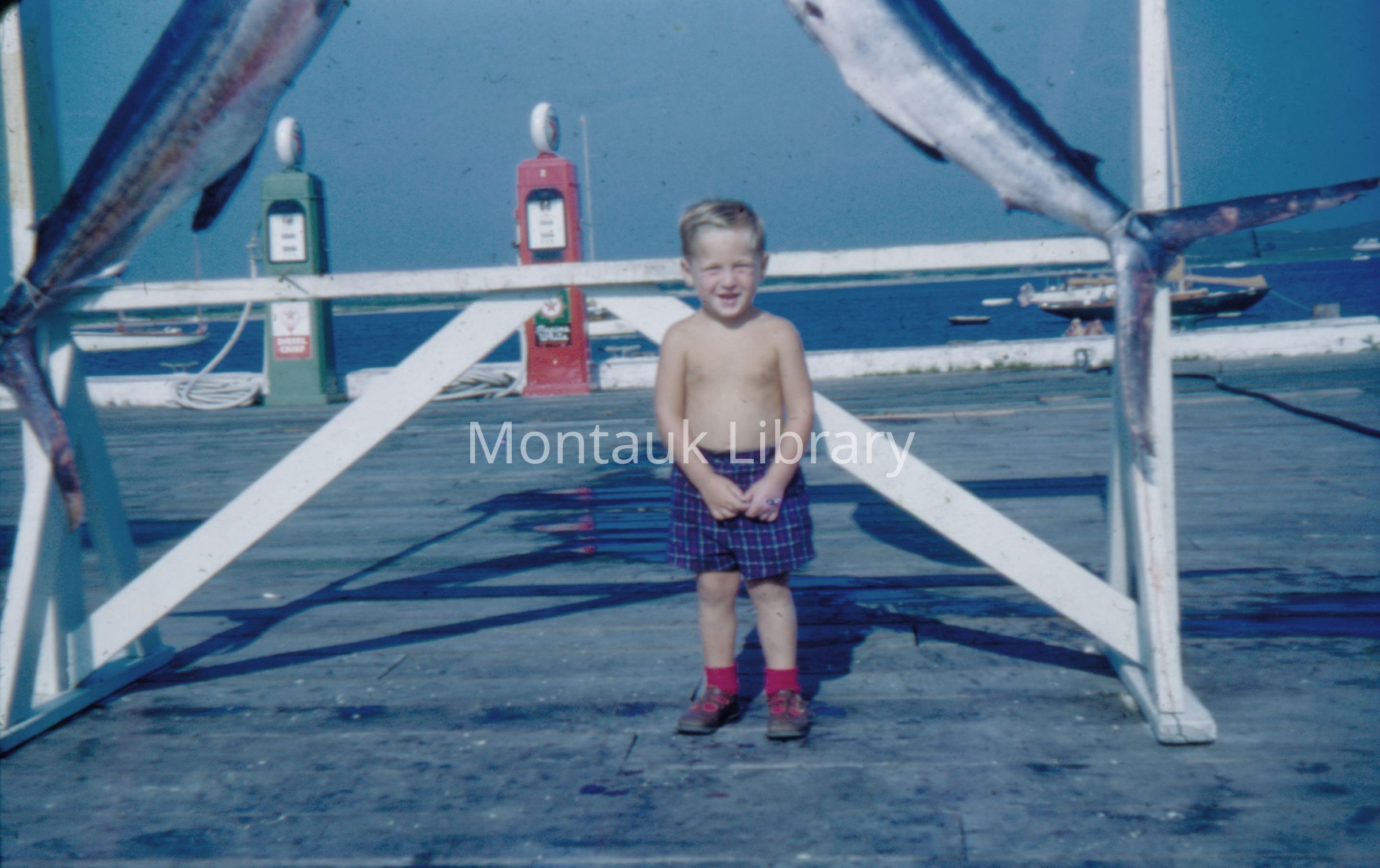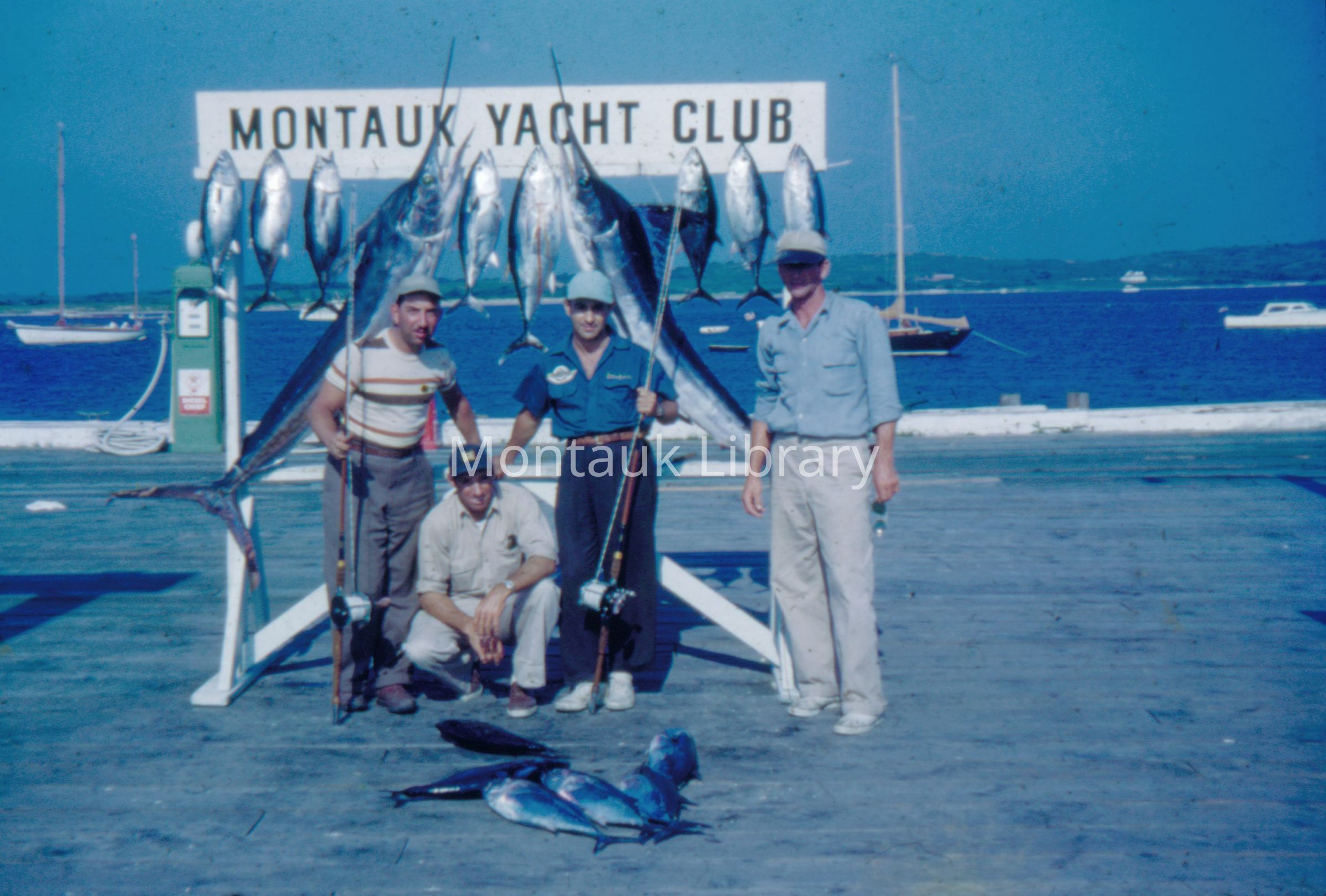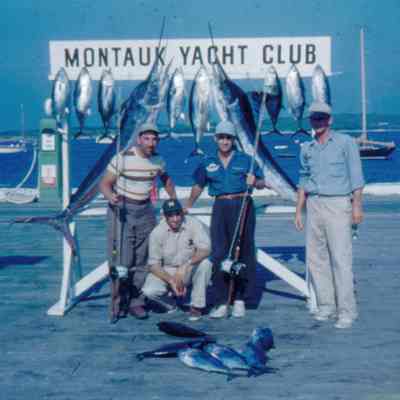 A collection of 113 35-mm color slide scans documenting fishing activities of Captain Ralph Pitts of Montauk. The slides depict commercial and charter boat fishing, dock life, family life, and other vessels on Lake Montauk. Some of the photographs are from the 1950s showing fishermen with their catch in front of the Montauk Yacht Club sign where Pitts docked his boat from 1945 onward. Pitts started fishing in Montauk professionally in 1940 from a 26-foot Jersey Skiff docked at the town dock on Star Island. He moved to the Montauk Yacht Club in 1945 when he got a second boat. He fished during the winter and ran charters during the summer. The slides additionally show a fishing trip to Bimini. All of the people, dates, and events in the slides came to the archives unidentified. To help us with the photograph captions, please contact archives@montauklibrary.org.Archive Details