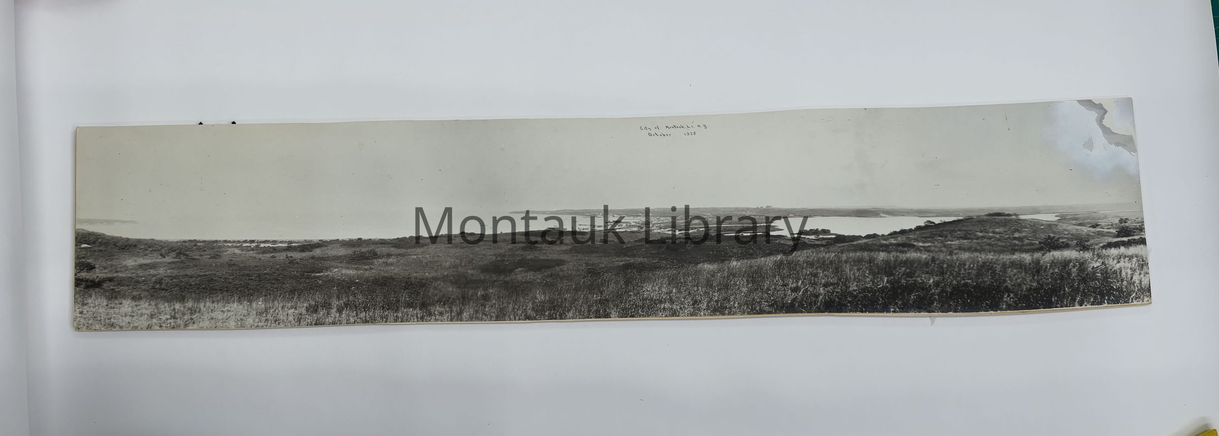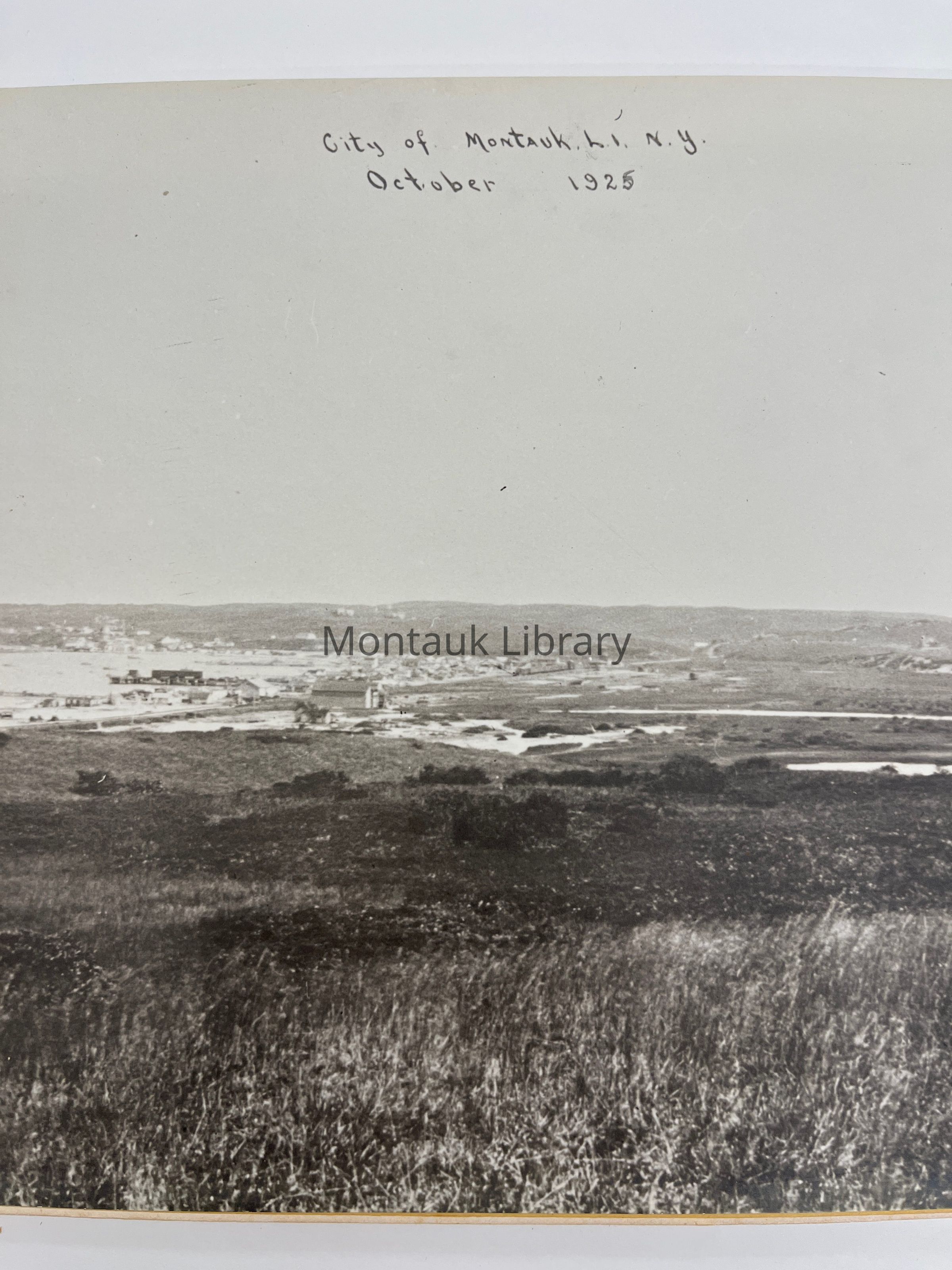 Black-and-white panoramic photo marked “ City of Montauk, L. I. N. Y. October 1925”Photograph Details