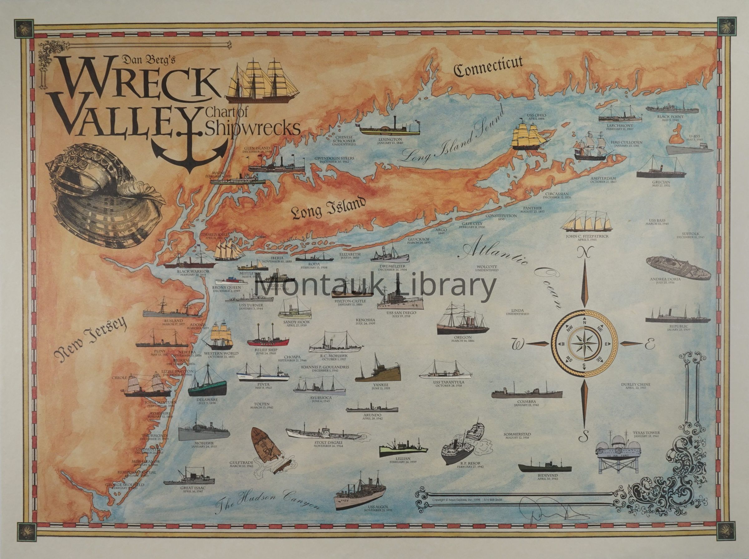 Dan Berg's Wreck Valley Chart of Shipwrecks in the Atlantic Ocean, Long Island Sound, and Hudson Canyon along the New Jersey, New York, and Connecticut.Map Details
