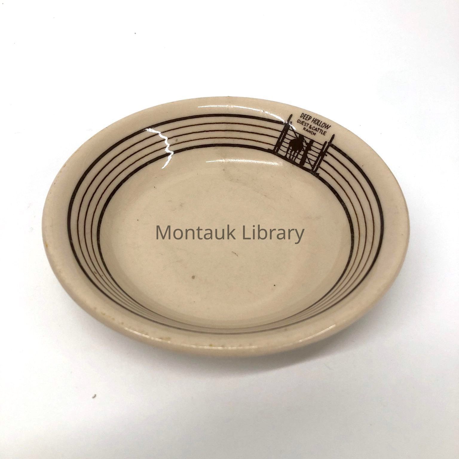 Small bowl made by Iro-Tan Ware Iroquois Restaurant-ware for Deep Hollow Guest & Cattle Ranch.Made/Created