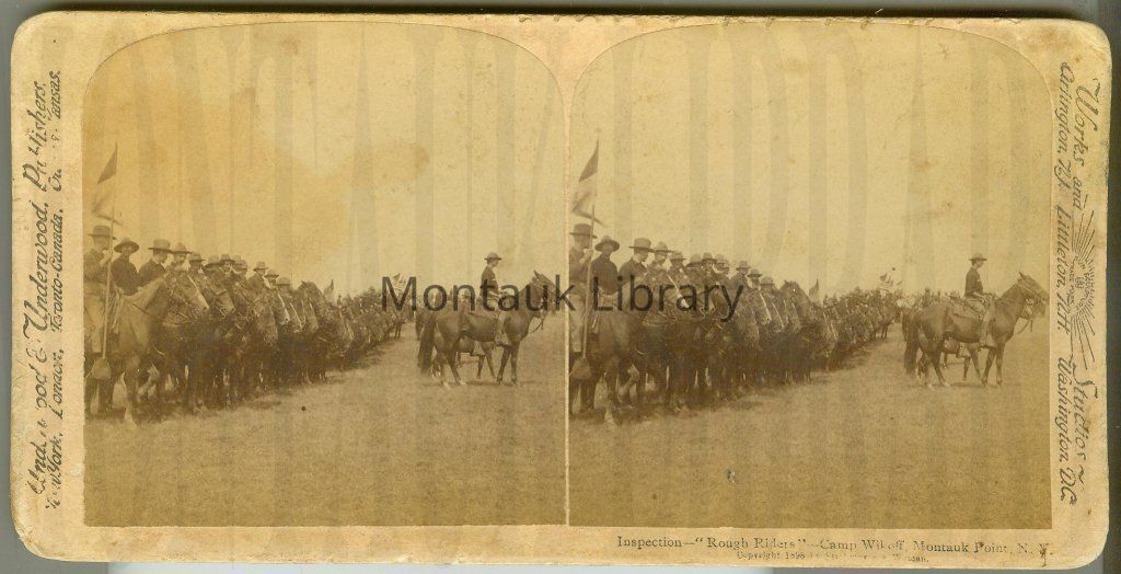 Sterocard titled " Inspection—"Rough Riders"—Camp Wikoff, Montauk Point, N.Y."