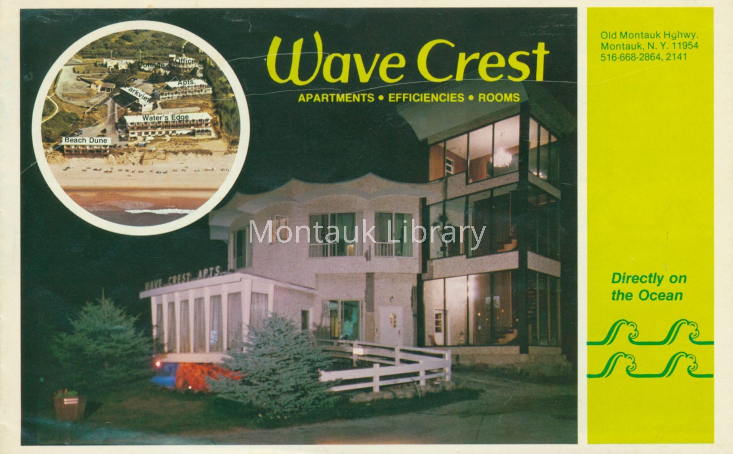 Scans of two brochures and two postcards from the Wave Crest Resort Motels, donated by the Jarmain family, the resort's original owners.Archive Details