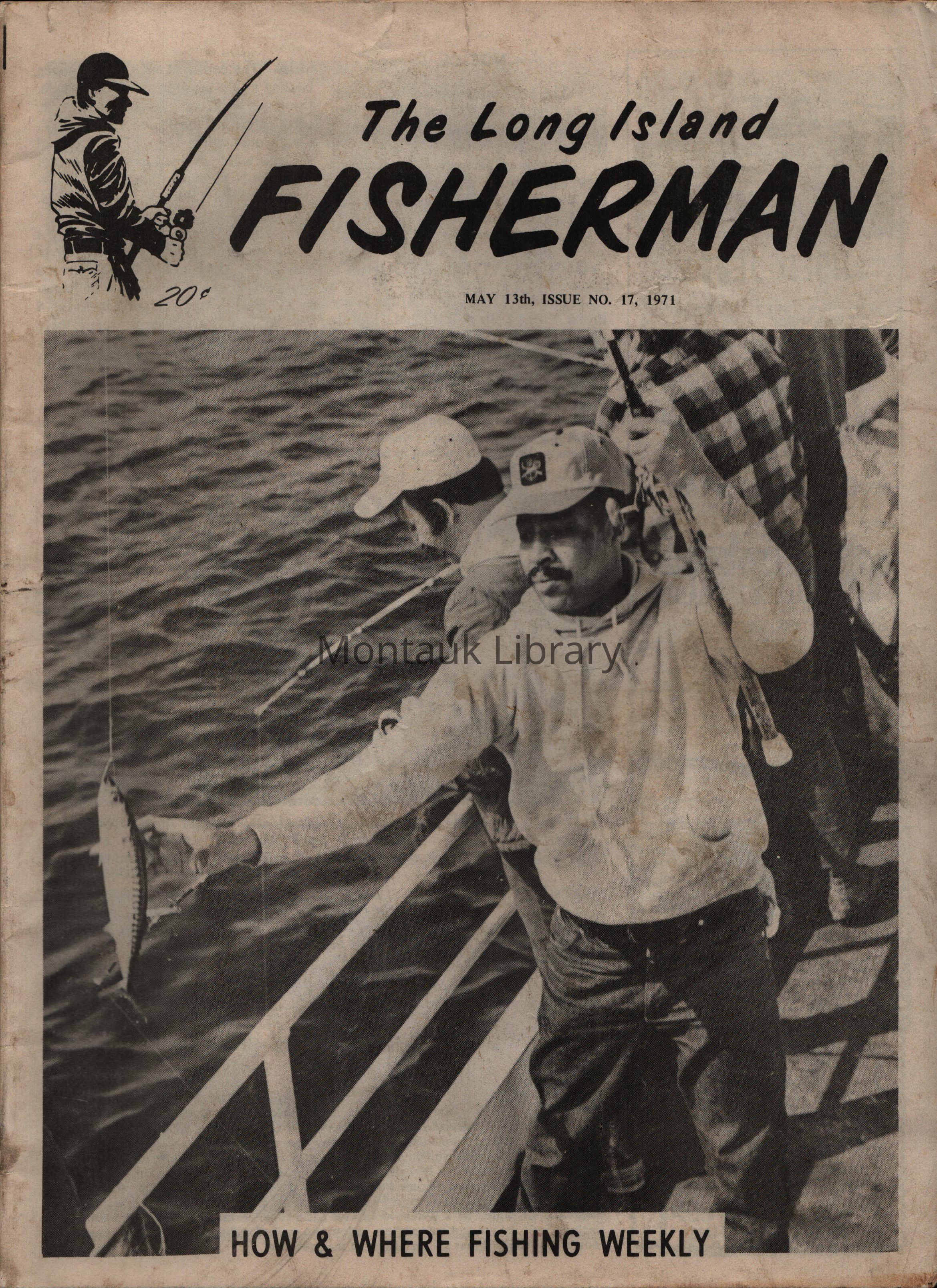 A vast collection of Long Island Fisherman (later titled Fisherman) weekly magazine dating from 1971 through 1988, with one issue from 1993. The magazine was founded in 1966 as The Long Island Saltwater Fisherman by Rich Reina. The publication grew to include four regional variations. The collection in the Montauk Library focuses on the Long Island region, with many issues covering saltwater fishing in Montauk. Magazines include writing, photographs, illustrations, cartoons, tide tables, and advertisements. The collection is near complete and may be of interest for both recreational and research purposes. In addition to covering sport and recreational fishing, the magazines capture issues affecting access, fisheries management, and conservation.Archive Details