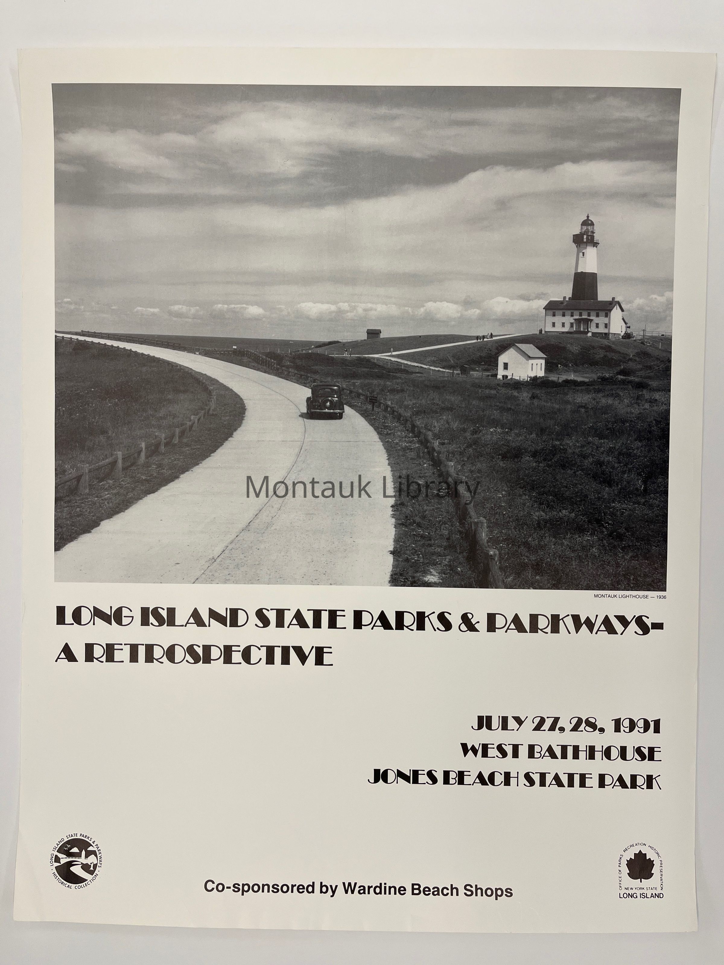 Long Island State Parks and Parkways – a retrospective. July 27, 28, 1991. Poster for exhibition held at West Bathhouse, Jones Beach State Park, with photograph of the Montauk Lighthouse, 1936.Copyright