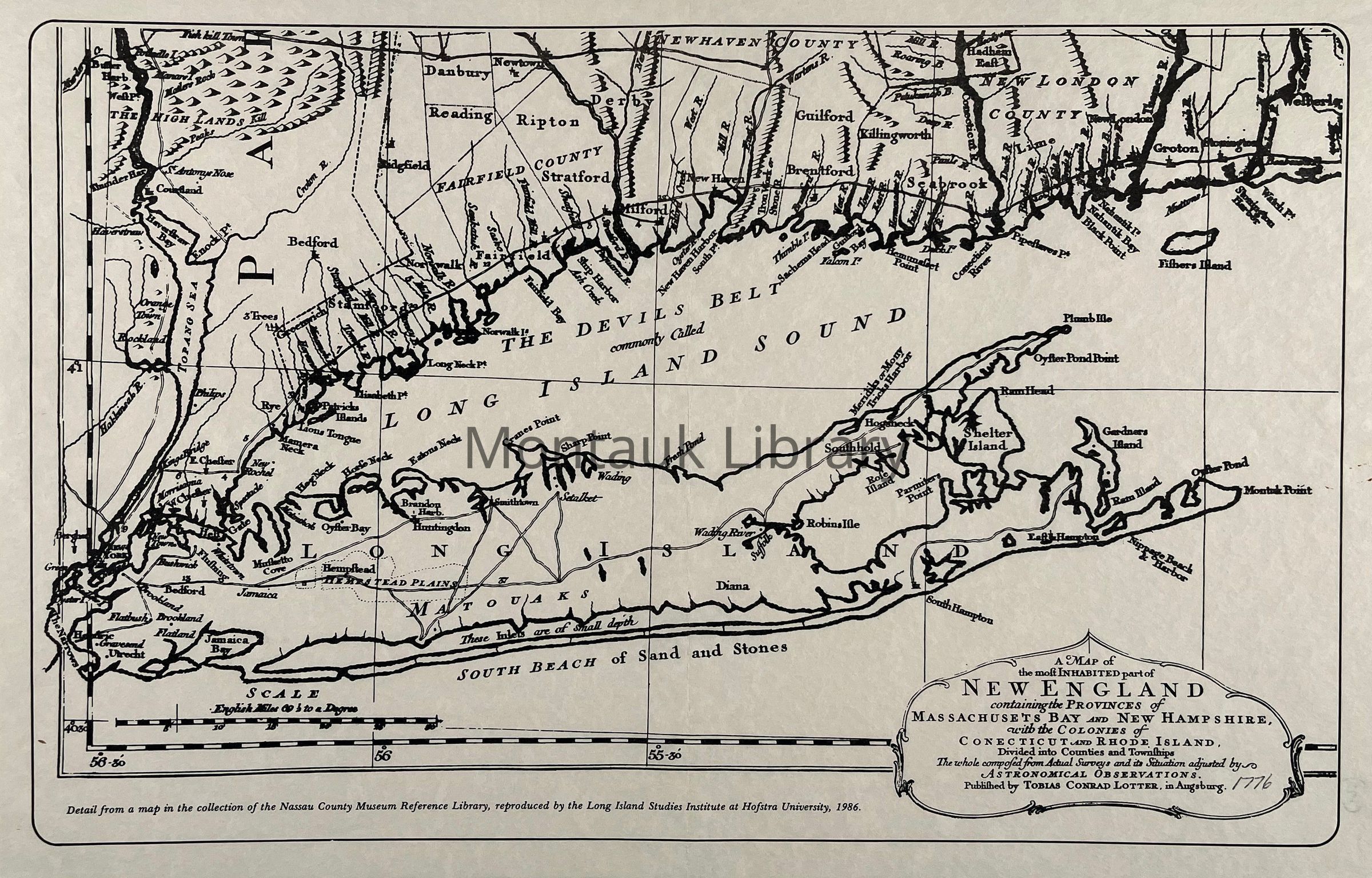 A map of the most inhabited part of New England containing the provinces of Massachusets Bay and New Hampshire, with the colonies of Conecticut and Rhode Island. Divided into counties and townships. the whole composed from actual surveys and its situation adjusted by astronomical observations. Detail from a map in the collection of the Nassau County Museum Reference Library, reprodued by the Long Island Studies Institute at Hofstra University, 1986.Map Details
