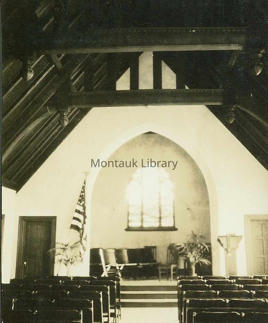 Before they had their own building or formalized congregation, members of the Presbytery of Long Island originally met in the Montauk Theater. In January 1928, the group convened to discuss the organization of a church and chose the name the “Montauk Community Church.” A building council was formed in March to negotiate the construction of a larger and customized space to congregate. The council included Rev. E. H. Palmer, Mr. and Mrs. P. Duryea, Mr. Albin Pearson, Dr. F. L. Satterlee, Mr. and Mrs. S. T. Honey, Mr. Richard Webb, Mr. C. Appleyard, Mr. E. V. Conway, Mr. Clarence Monroe, and Mr. T. E. Ringwood.