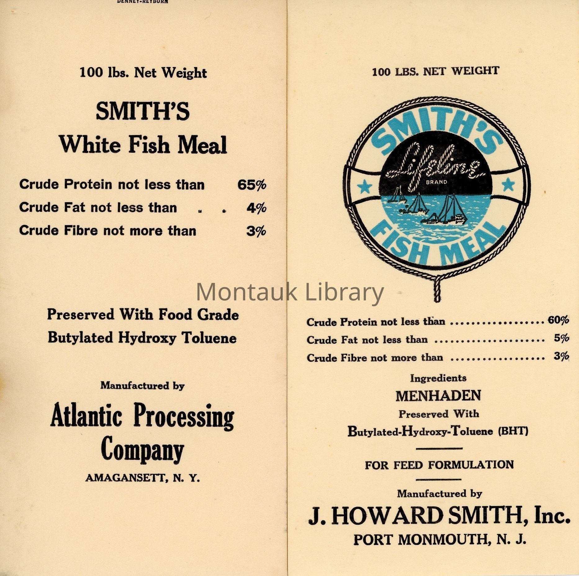 Smith Fish Meal Product Labels