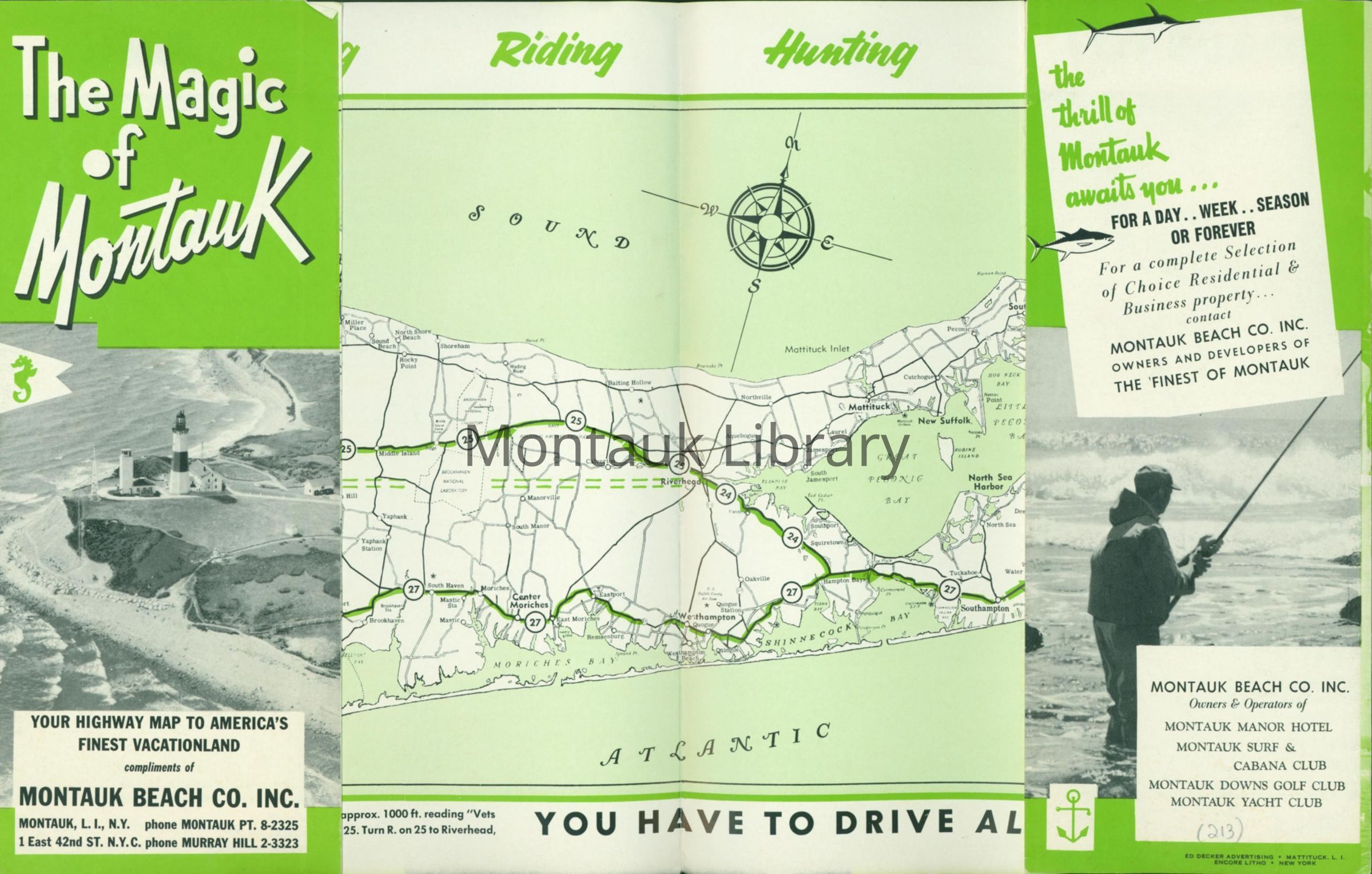 Fold-out brochure map and guide to Montauk published by the Montauk Beach Company.
