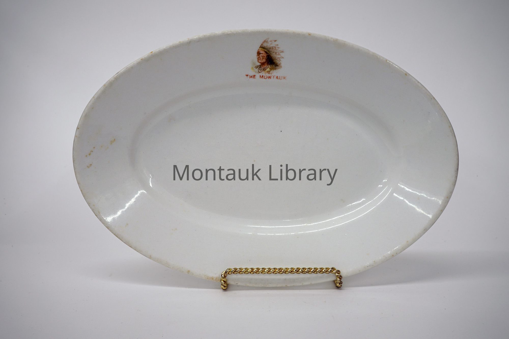 Set of 2 serving plates made by Greenwood China with motif of a Montauk Indian designed by James M. Shaw & Co. New YorkDimensions