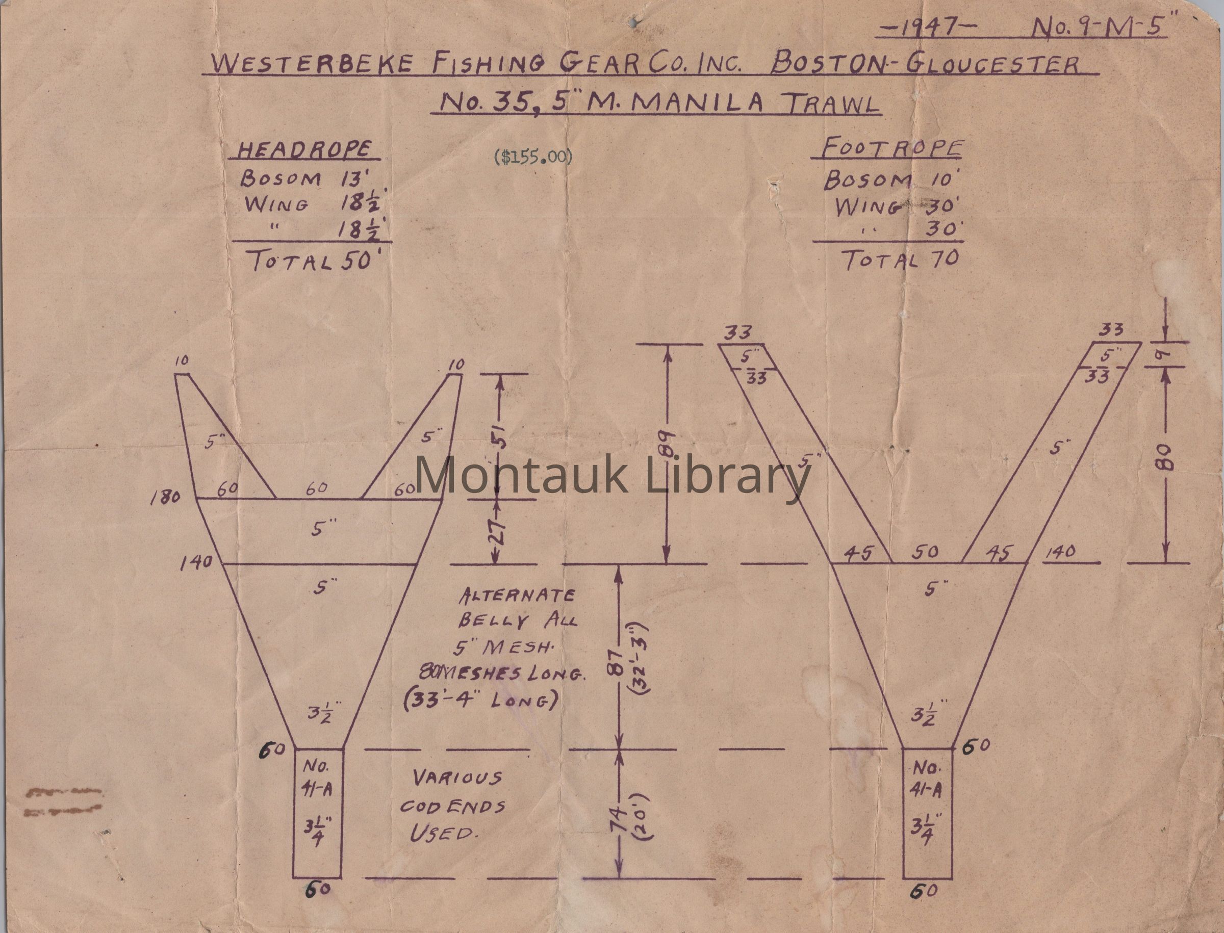 Westerbeke Fishing Gear Co. Inc. Manila Trawl, 1947Entry/Object ID