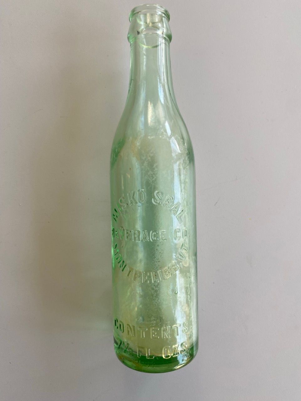Light green bottle embosed: "Misko Seal / Beverage Co. / Montpelier, Vt. / Contents / 7 1/2 Fl. Ozs. / 3903A Root 25"