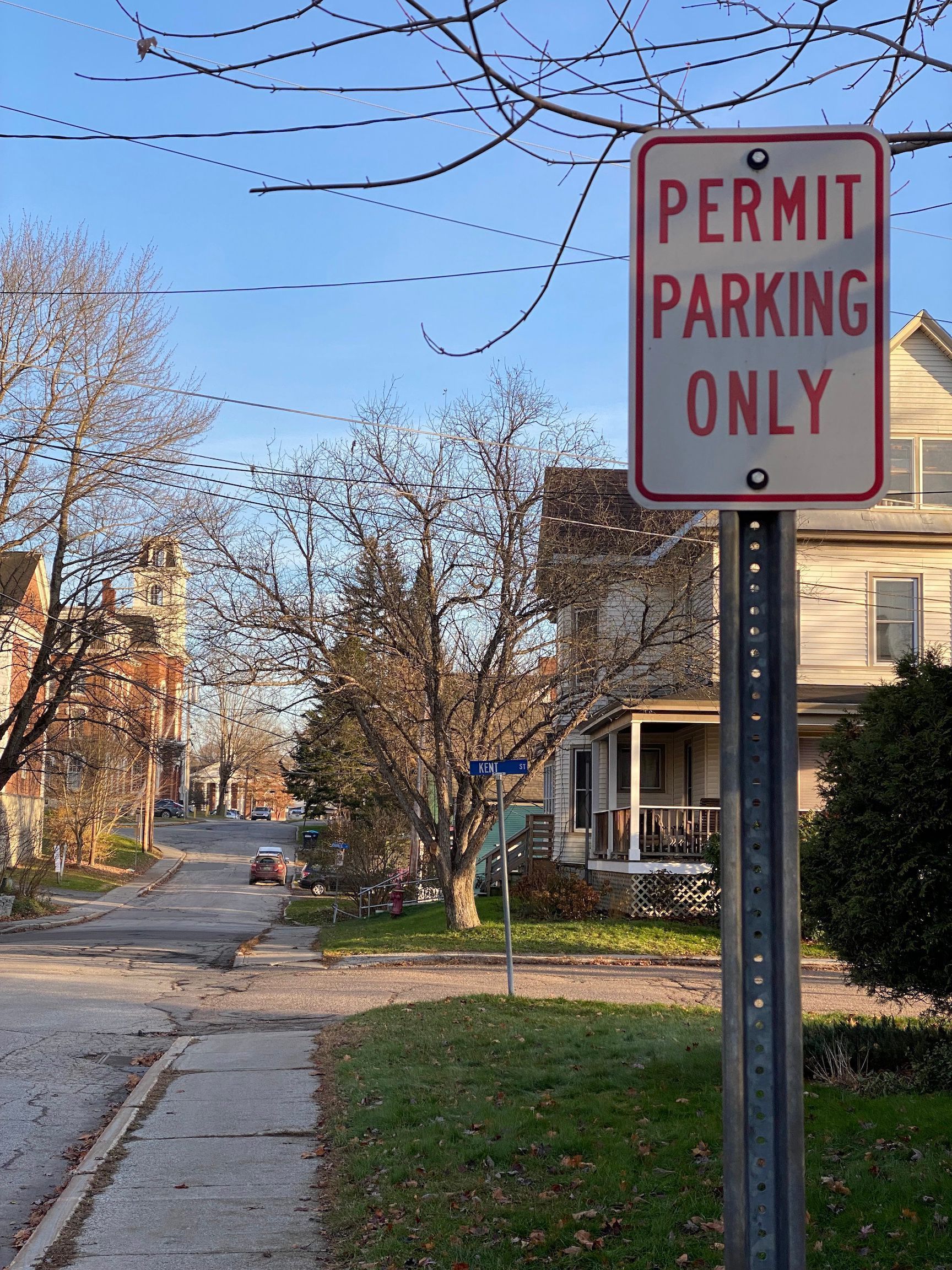 When Norwich University owned the Vermont College campus in Montpelier and used it to house civilian residential students, parking in the surrounding neighborhoods was at a premium. An ordinance was put in place to limit parking on First Avenue, Ridge Street, Kent Street, and Tracy Street to residents. The Montpelier Police Department issued paper parking permits for people to display on the dashboards of their cars. This is the permit issued to Daniel H. Boomhower and Roberta S. Tracy when they purchased their home at 8 Kent Street in July 1993. About 10 years later Ms. Tracy was told that the regulation was still in effect but was no longer being enforced. In December 2023 the regulation was still part of the city's ordinances.Acquisition