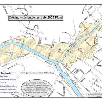 Map of Flooding in Downtown Montpelier, July 2023