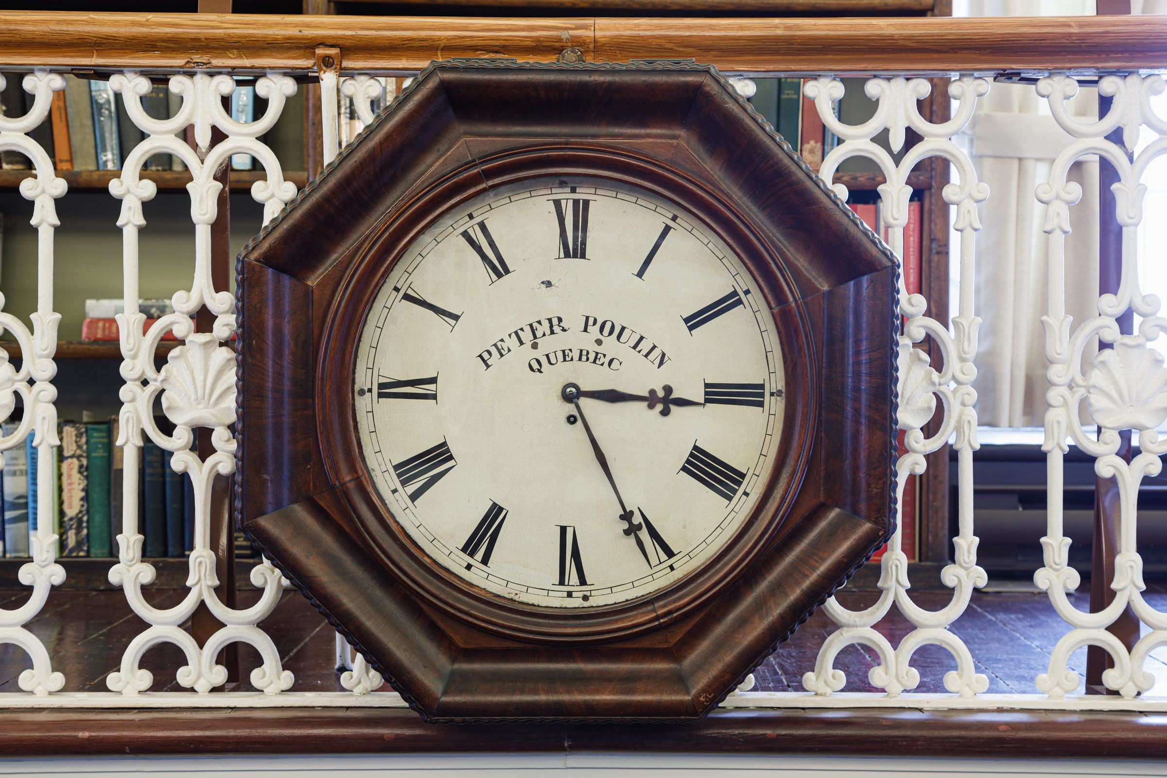 back of the clock, above the sliding panel/arrière de l'horloge, au-dessus du panneau coulissantTranscription