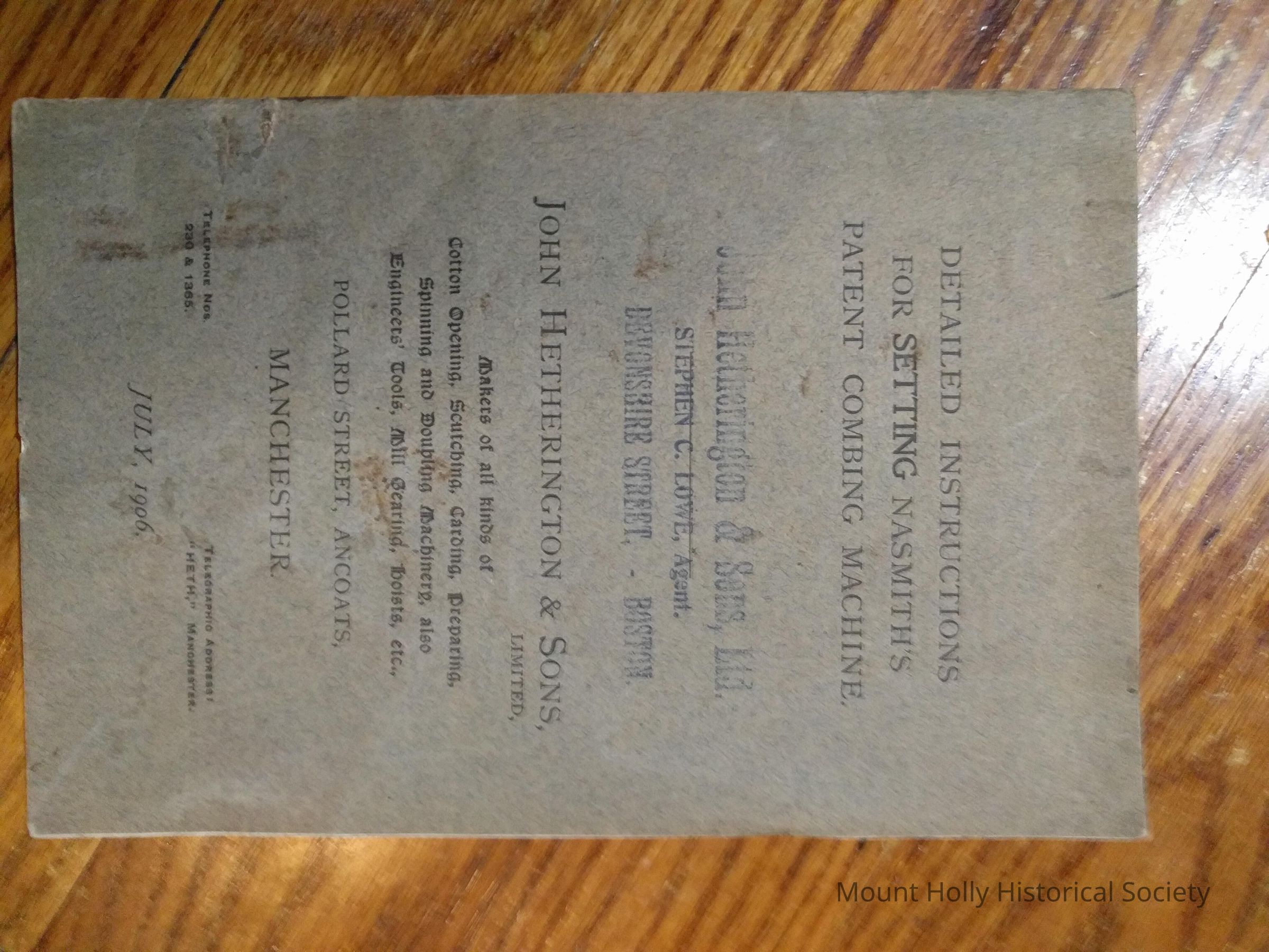 Detailed Instructions for Setting Nasmiths Patent Combing Machine "Michael A Rafter"