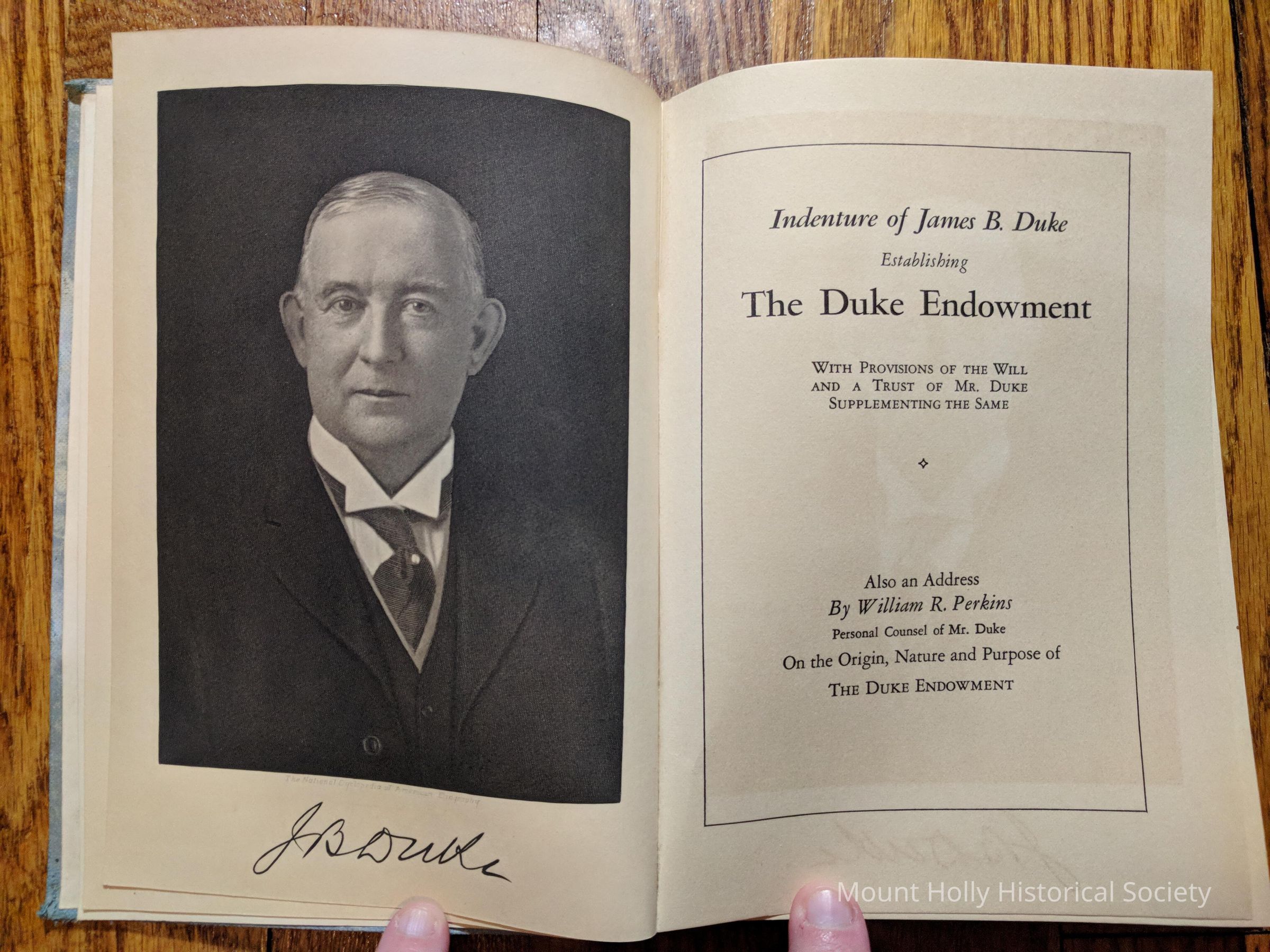 The Duke Endowment - Indenture of James B Duke, presented to John Wilson Tucker