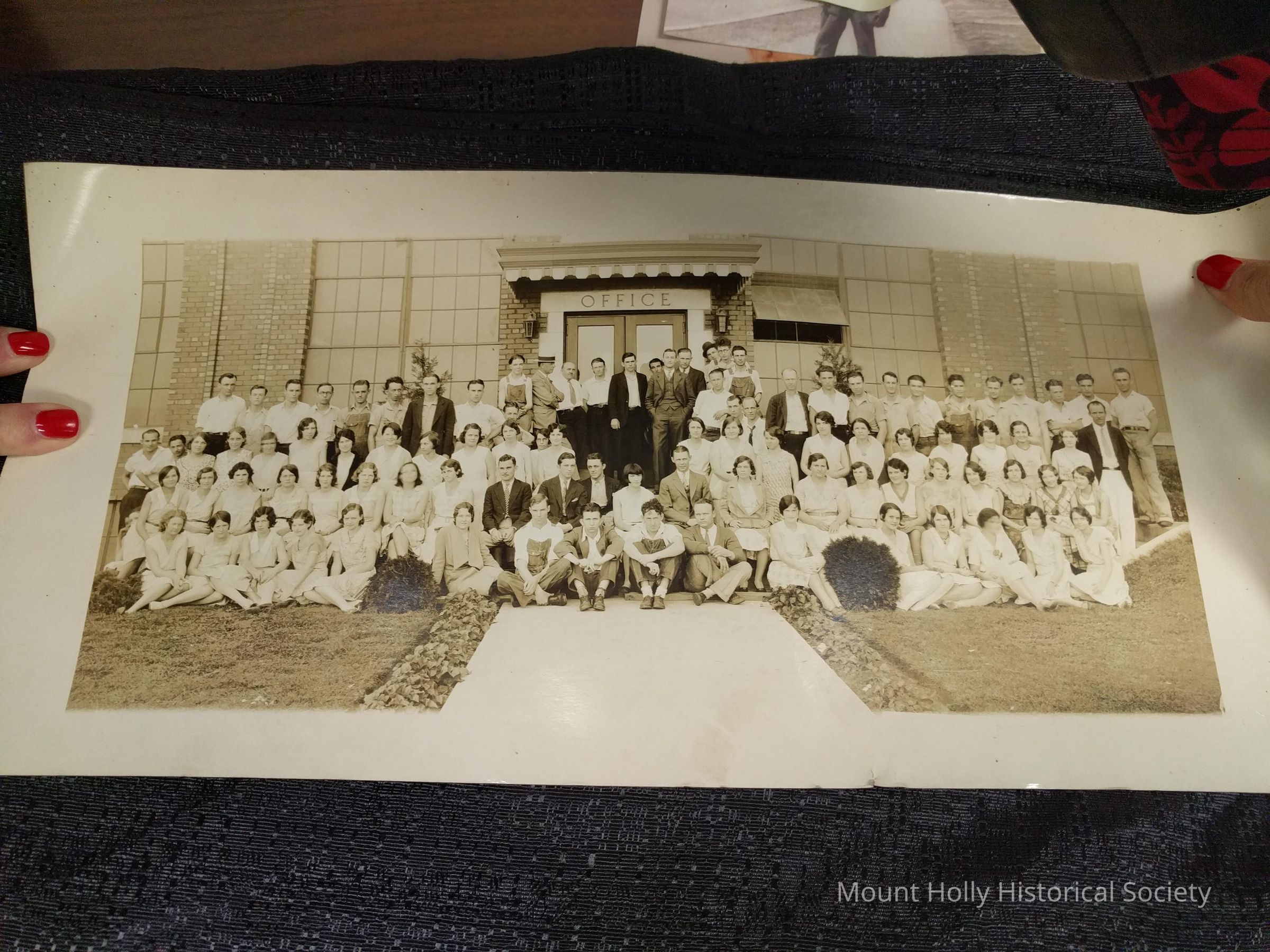 Men and women in front of mill office Possibly American-Efrid Adrian (Madora) Mill