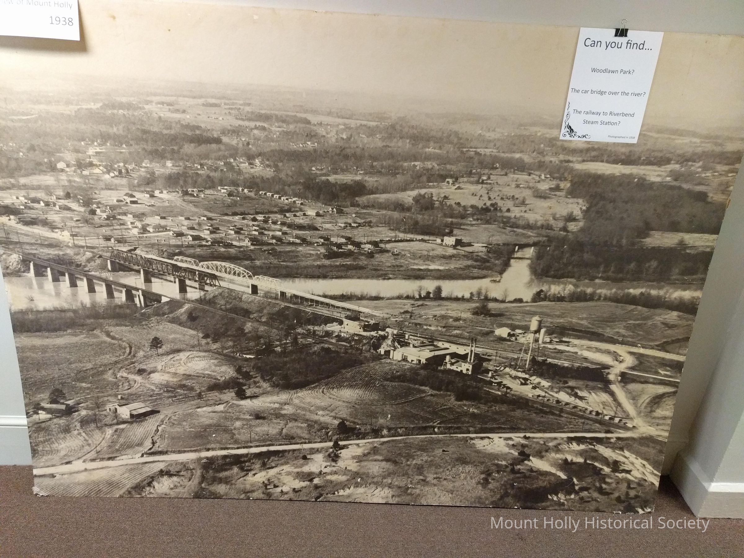 Aerial view of Sodyeco Southern Dye Plant (Mill) Mount Holly at Catawba River bridge