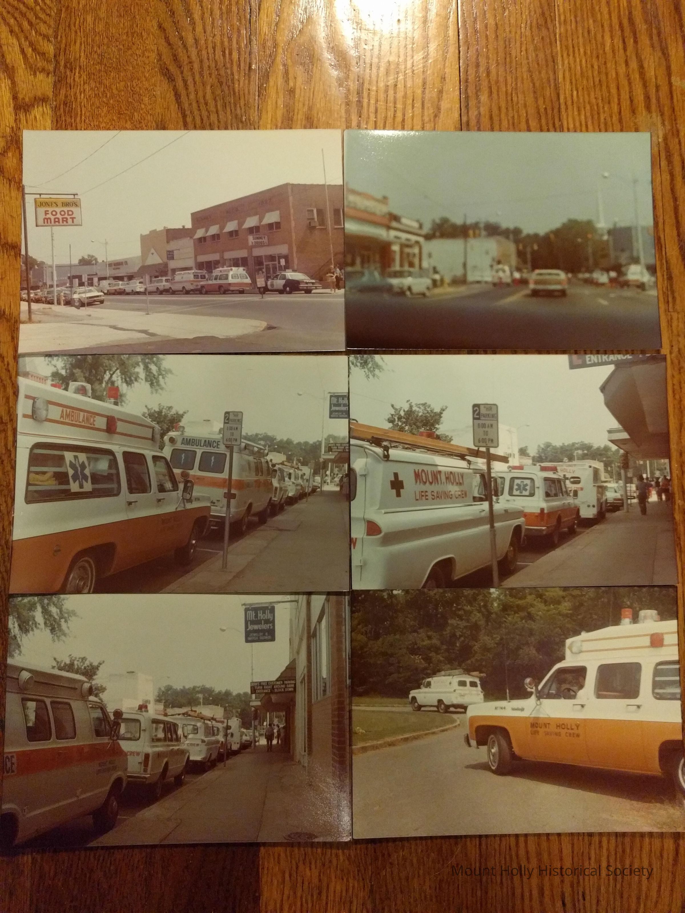 Main street, ambulance, life saving crew, vehicles lined up, Jones Brothers food mart, Mount Holly Jewelers, Derrs (6)