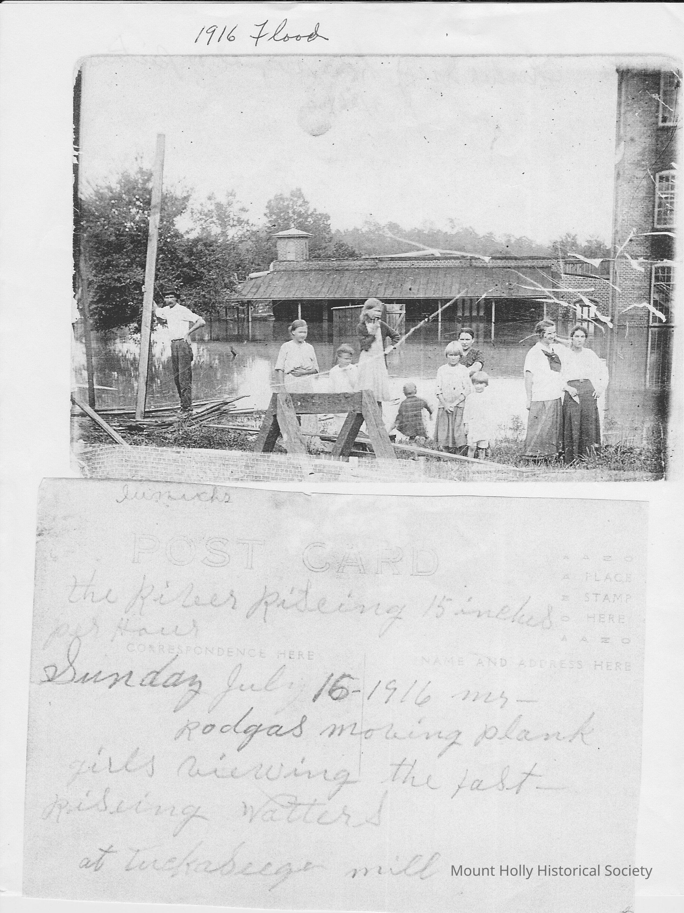 Copy - Mr Rodgas moving plank, girls viewing the fast rising waters at Tuckaseegee Mill (Charlie's Drug has original)