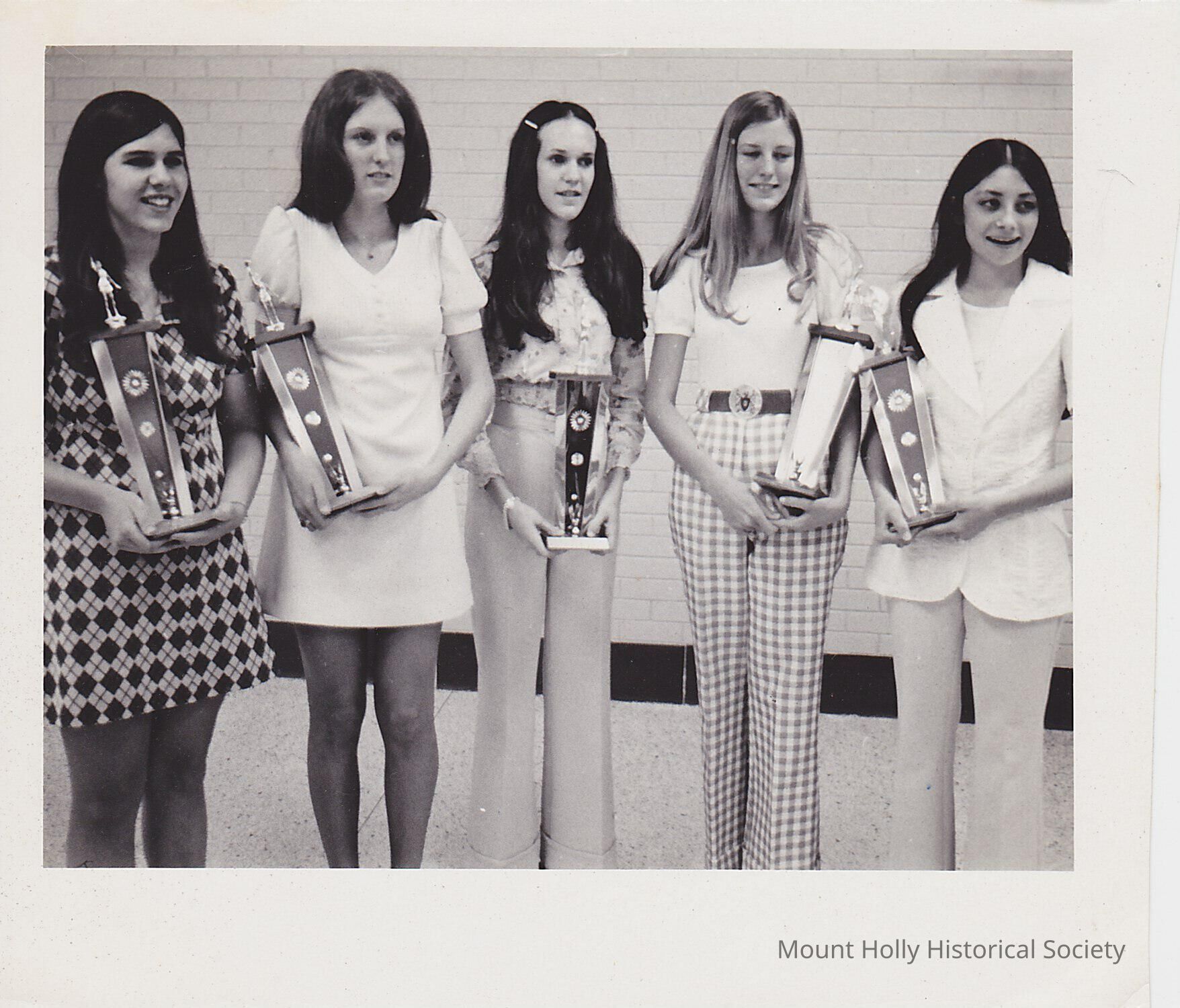 East Gaston High School Basketball Stars, 2nd from left: Marrie Neely, 4th from left: Linda Stowe