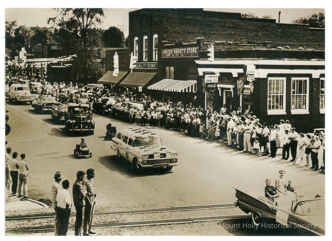 Parade down Main Street, taken from Central Avenue "Qality Store" "United Variety Store" "Charlie's Drug"