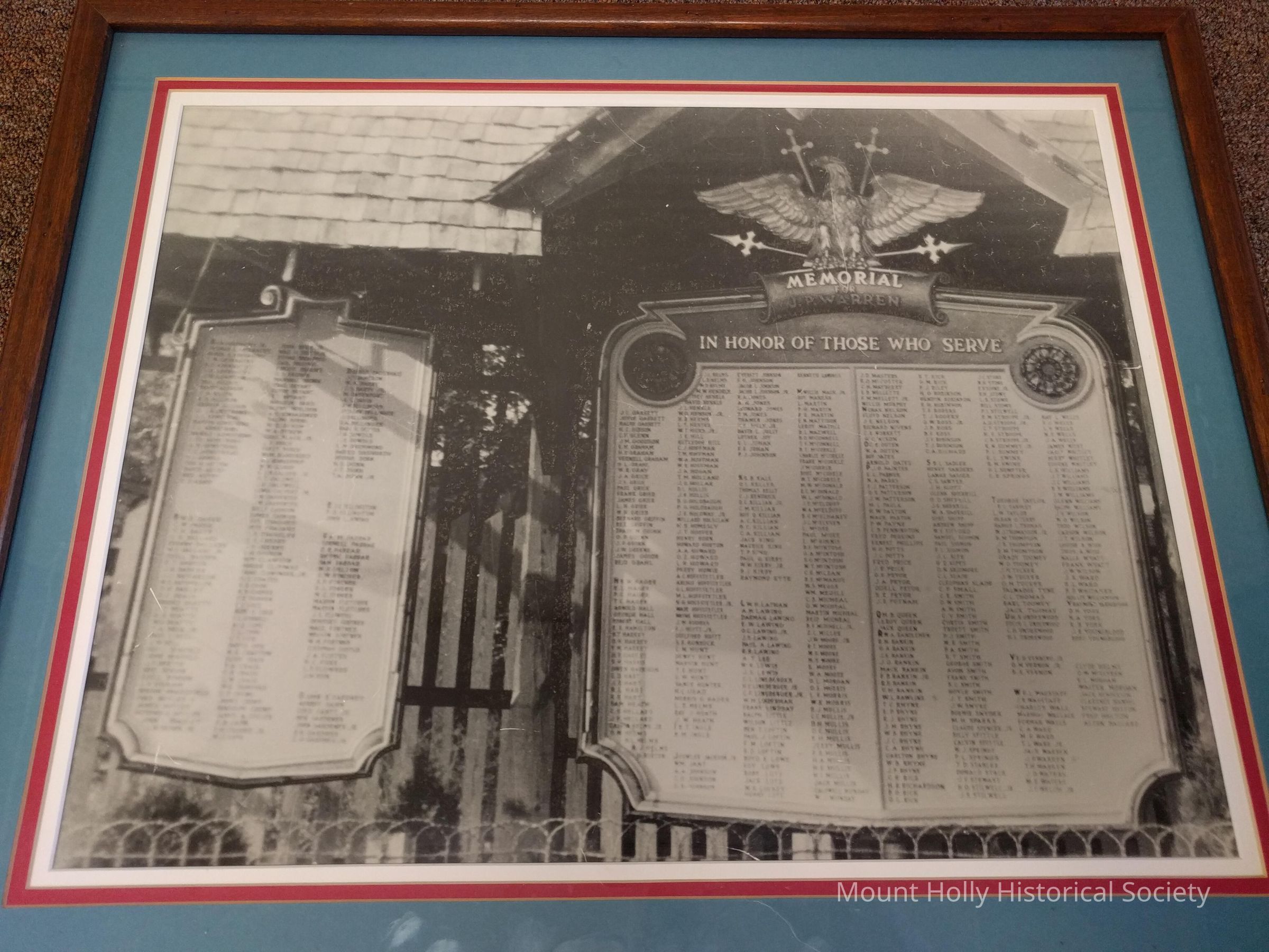 Large framed picture, WWII "Memorial for J P Warren in honor of those who served"