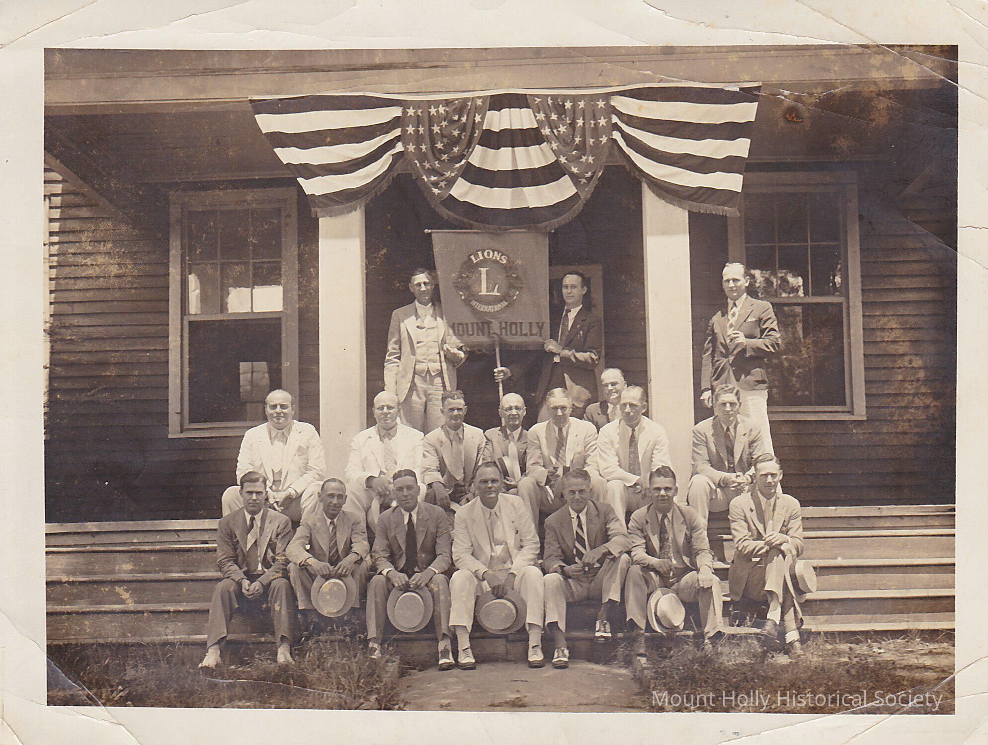 Mount Holly Lions Club (L-R) Seated 1st row (2. Willis Holland 4. JM Craig 6. James JH Ware) 2nd Row (1. RB Goldstein 2. Dr. EW Connell, 7. Dr. WJ Springs?) 3rd Row Standing (2. Dr. AU Stroupe)
