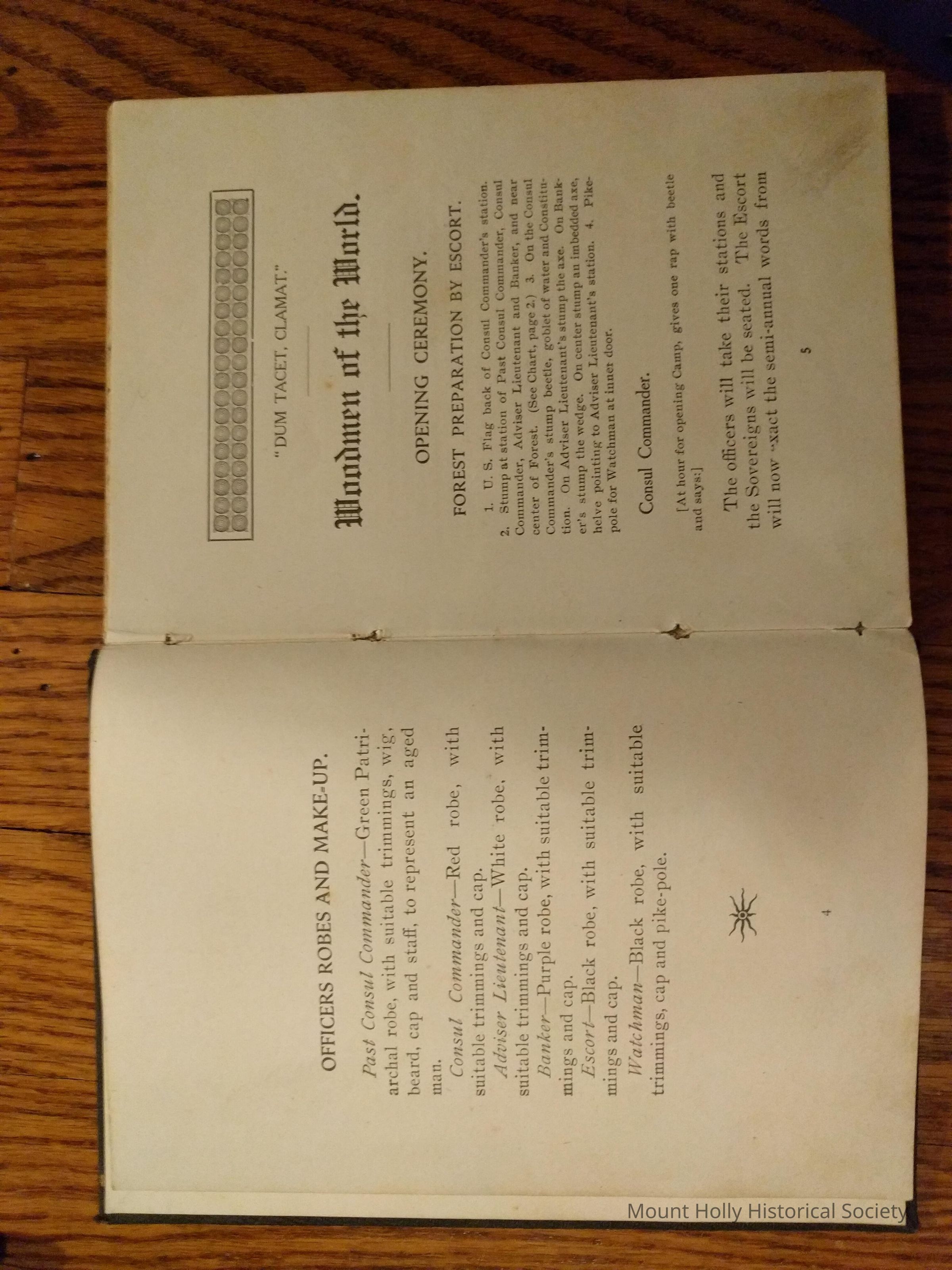 Order of business "Woodmen of the World" "Dum Tacet, Clamat"