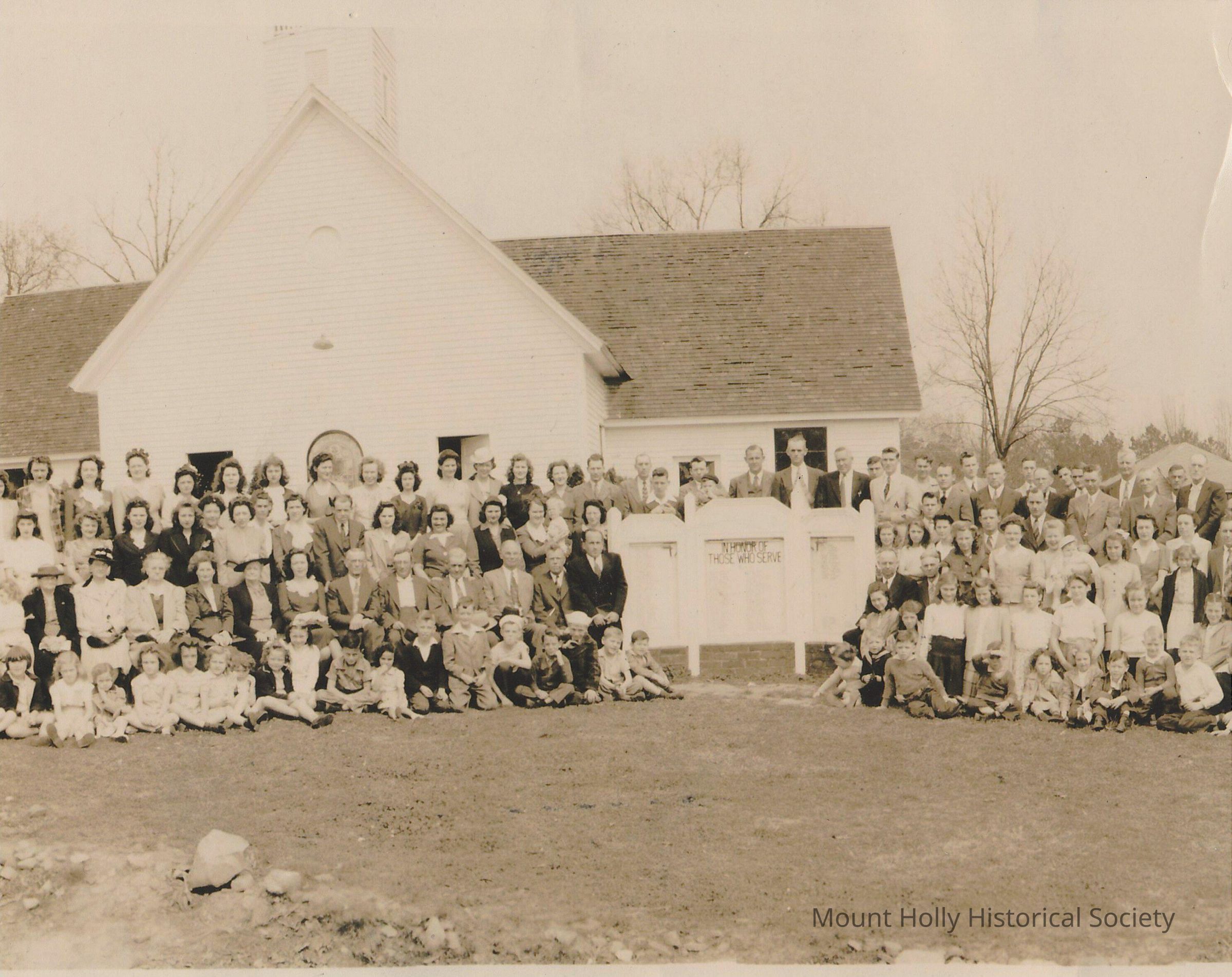 Tuckaseege Baptist Church congregation with war memorial - original building