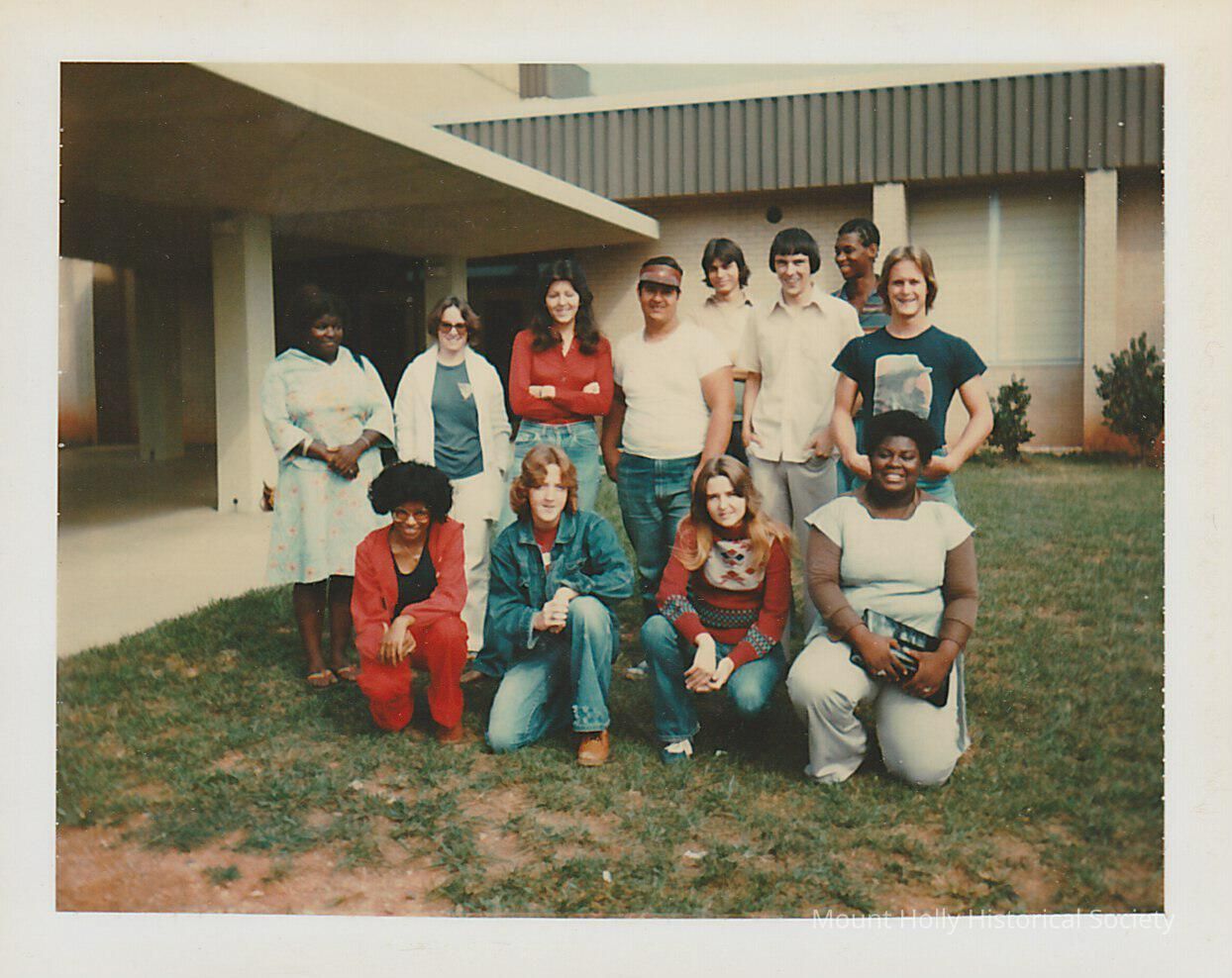 School Photos - H.S. group shot - 1st Row - Thala Wilson, Jo Wall, Lynn Ballard, Jody Wilson - 2nd row - Tonya Kearns, Phyllis Ellington, Jill Clayton, Charle Gawn?, Andy, Alvic, Roger Teems, Dwight Bradley, Steve Abernathy